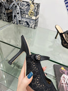 cd pump 95 transparent mesh embroidered black flower moitf