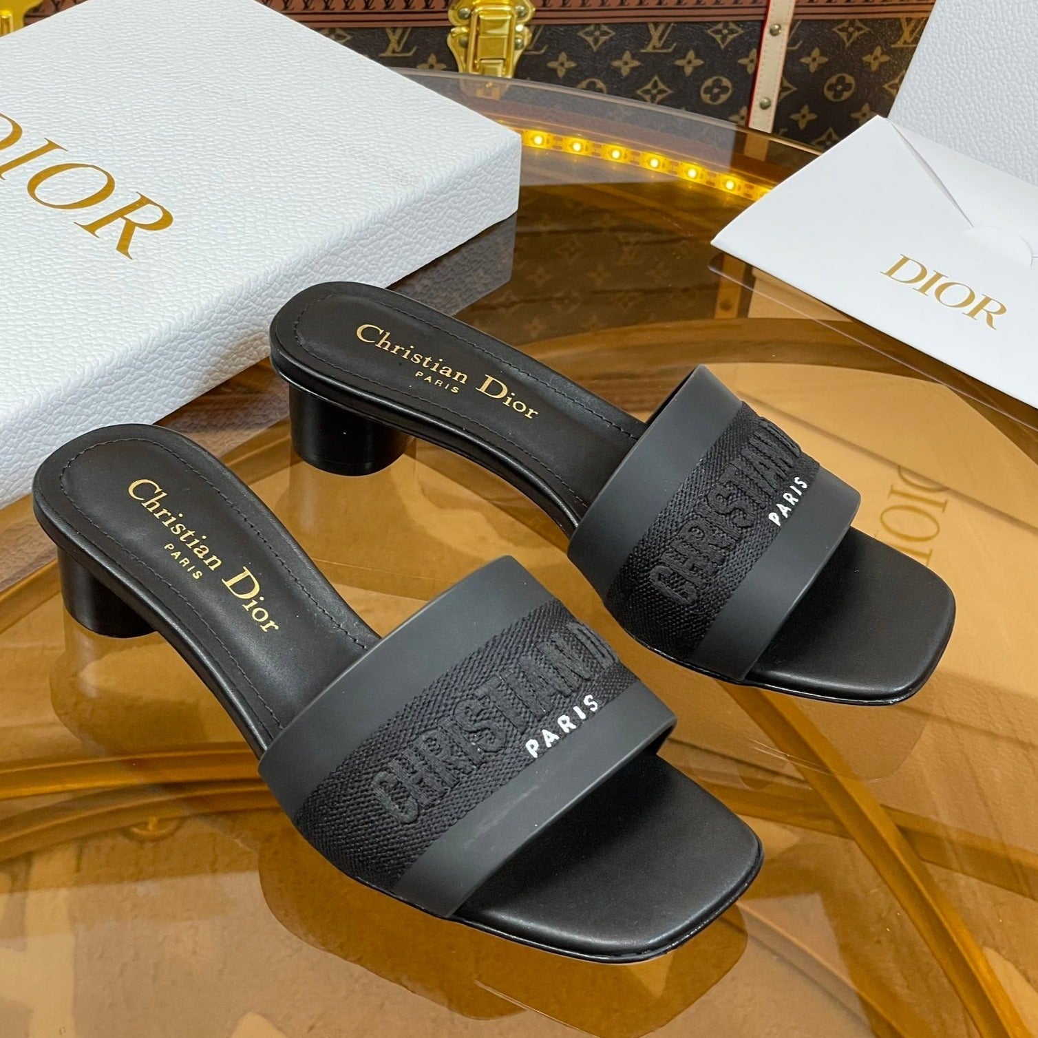 cd slide 45 black calfskin embroidered cotton