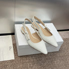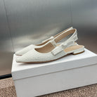 cd slingback flat embroidered cotton white calfskin resin pearl