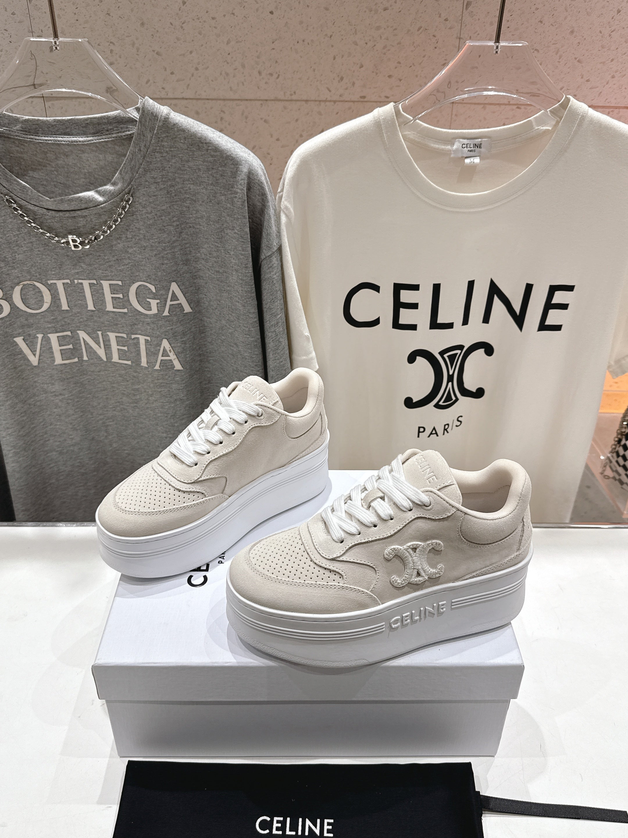CELINE 25C SNEAKERS WITH WEDGE BEIGE SUEDE 236766