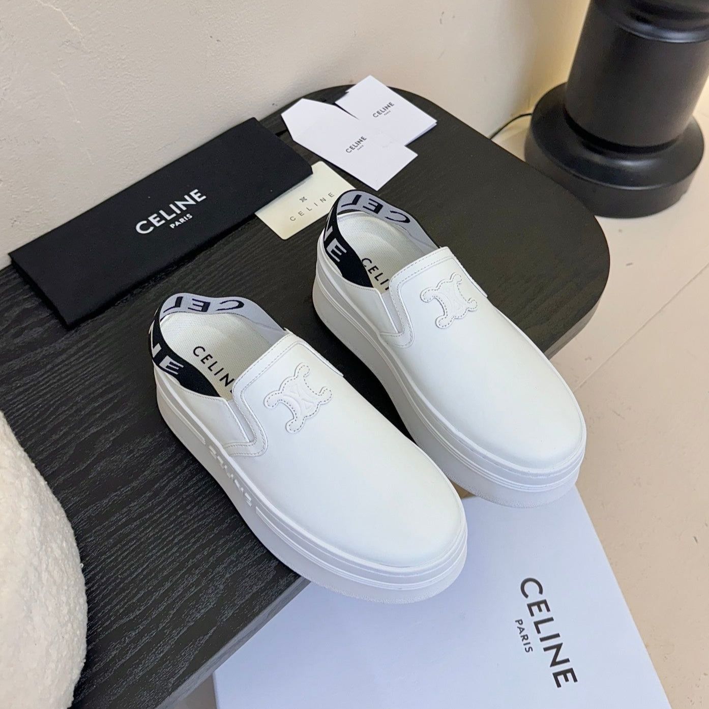 CELINE Block Wedge Mule White Calfskin 235721