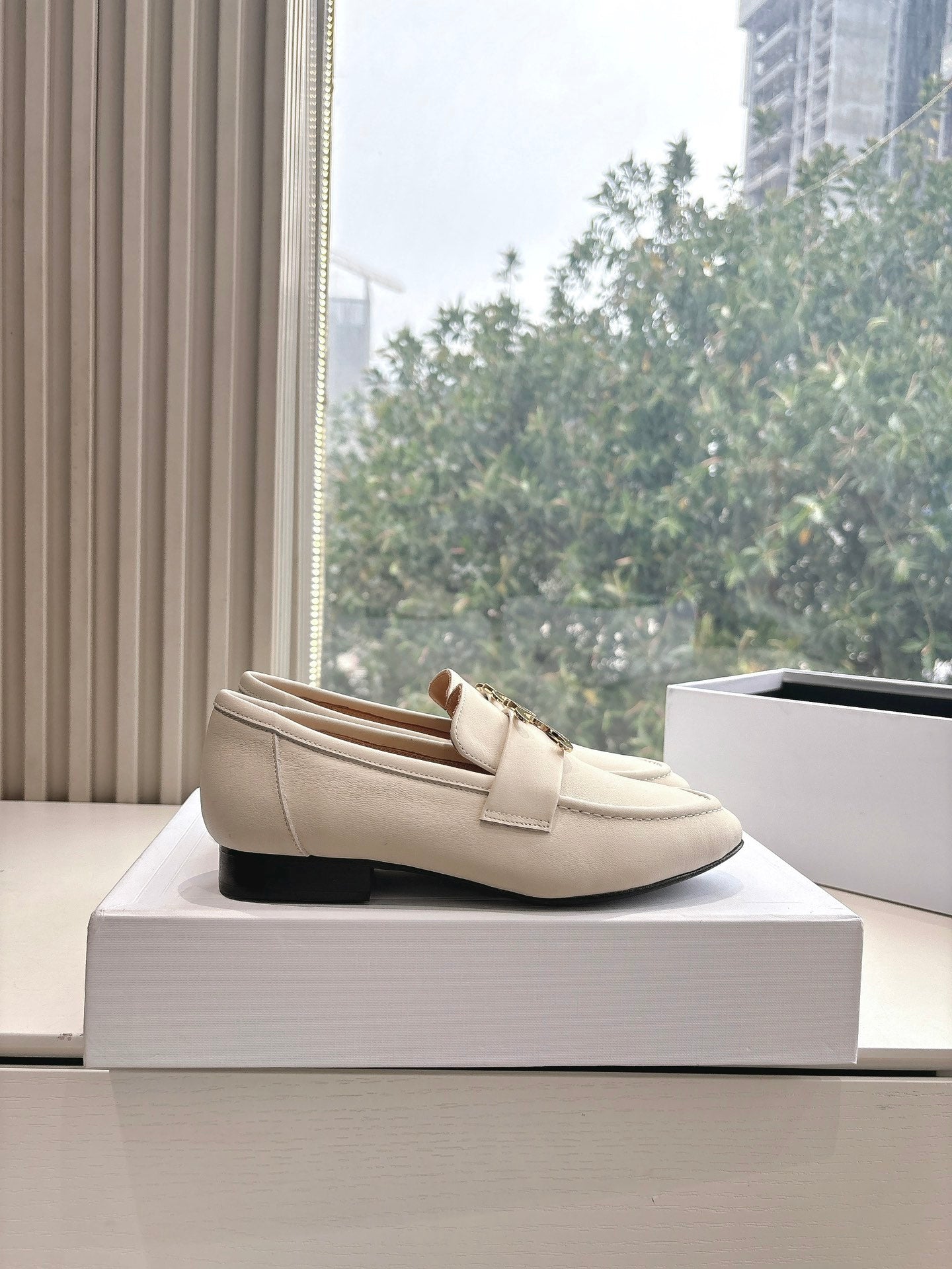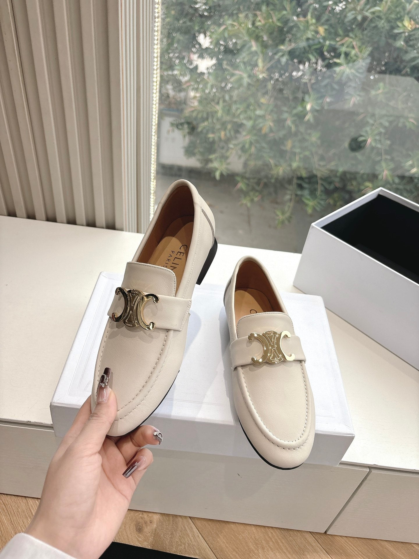 CELINE Buckle Triomphe Loafers White Leather 285957