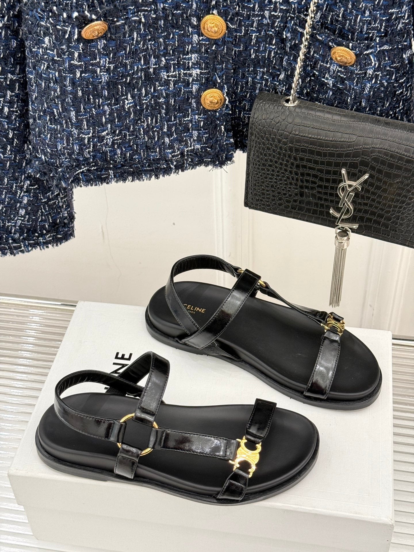 CELINE Maud Sandal Black Leather 285904