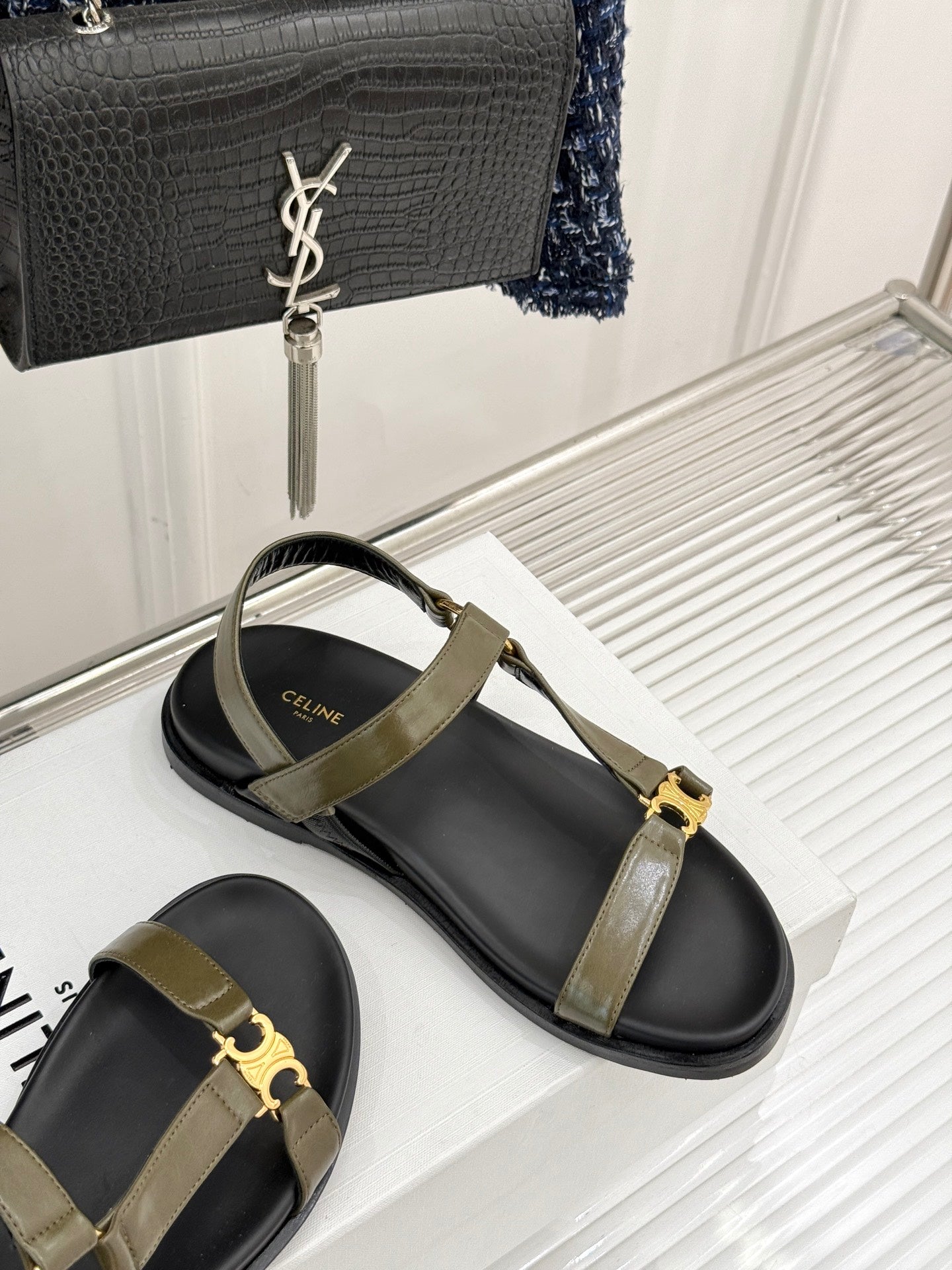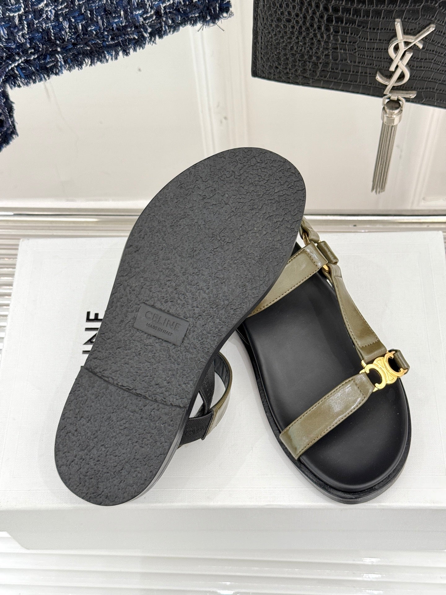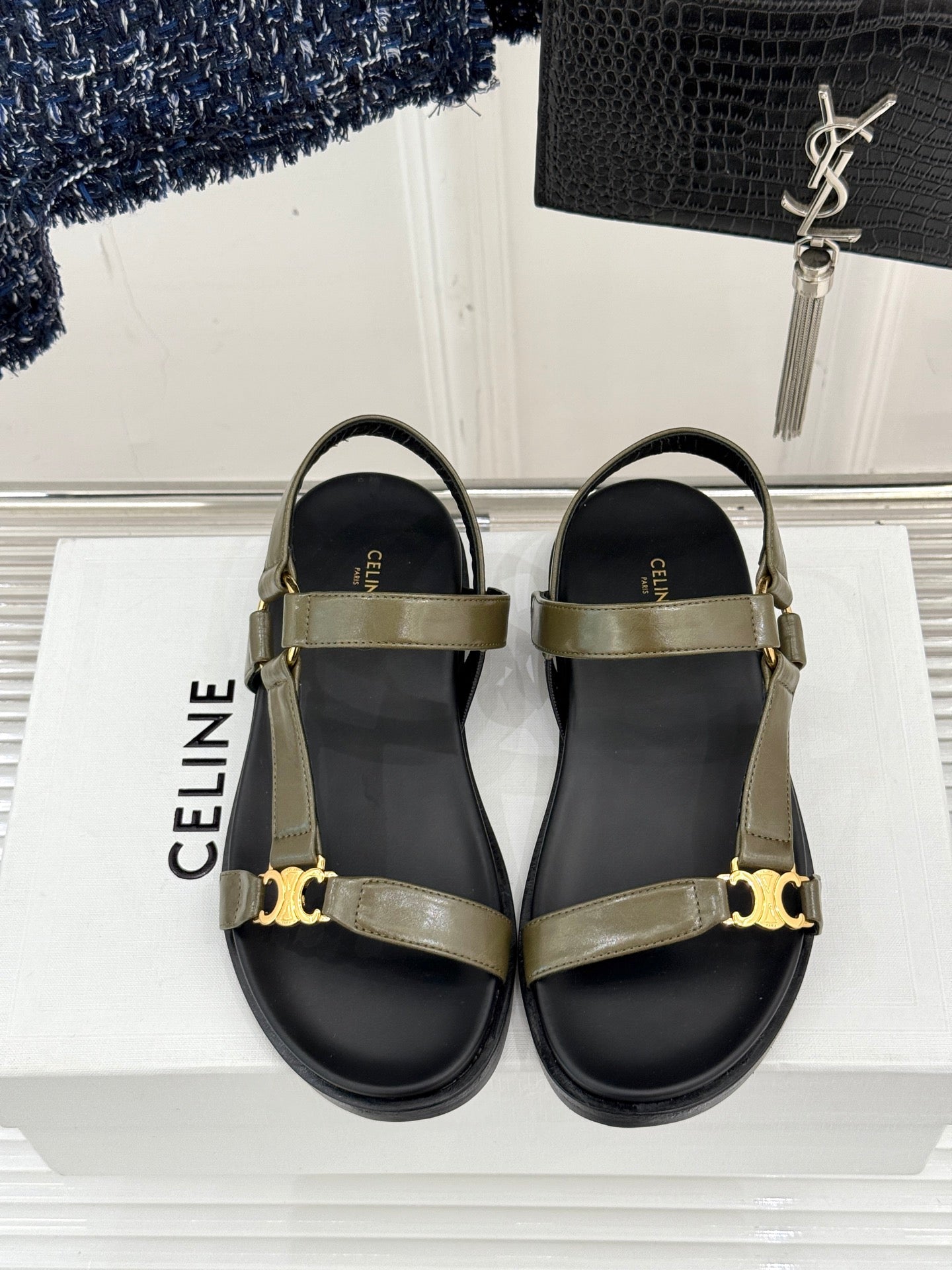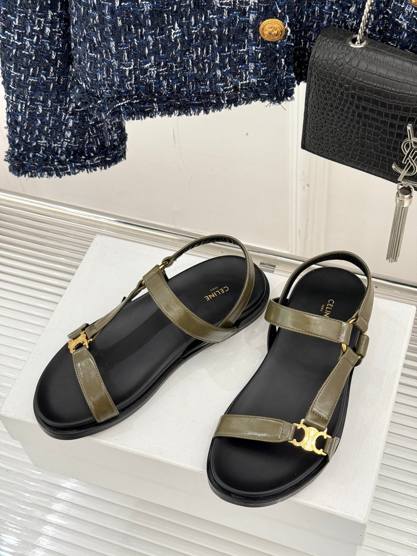 CELINE Maud Sandal Moss Green Leather 285902