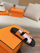 CHYPRE SANDAL BLACK MIX PASTEL PINK CALFSKIN