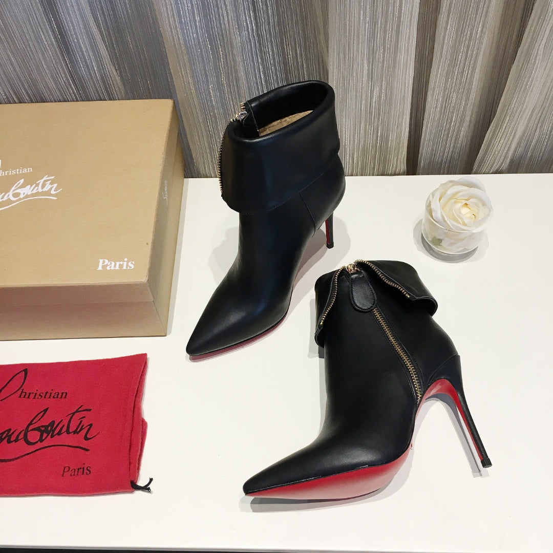 CL Women Zipper Ankle Boots 100mm Calfskin Black
