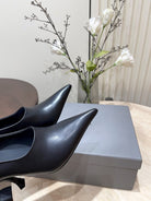 CURVED HEEL DEEP MOUTH PUMPS IN BLACK CALFSKIN