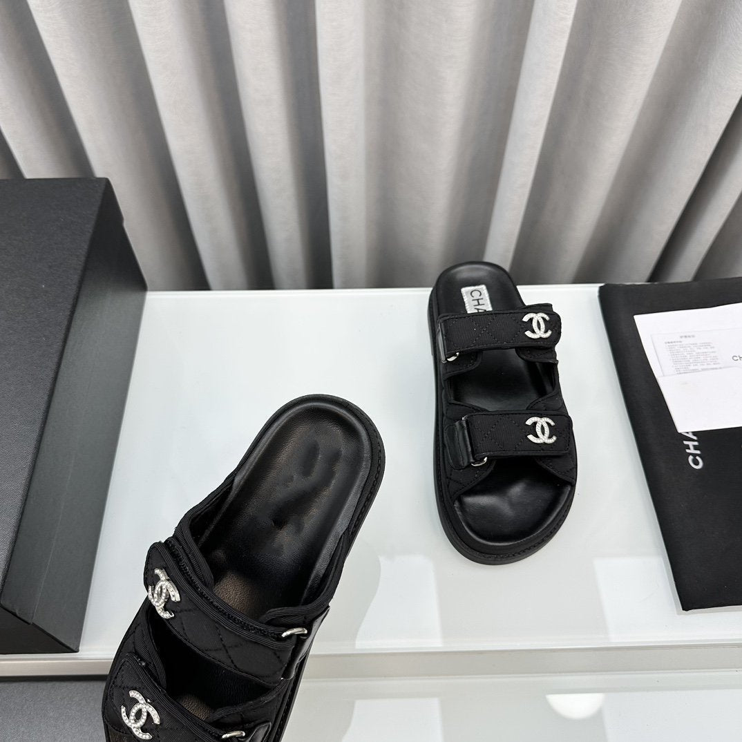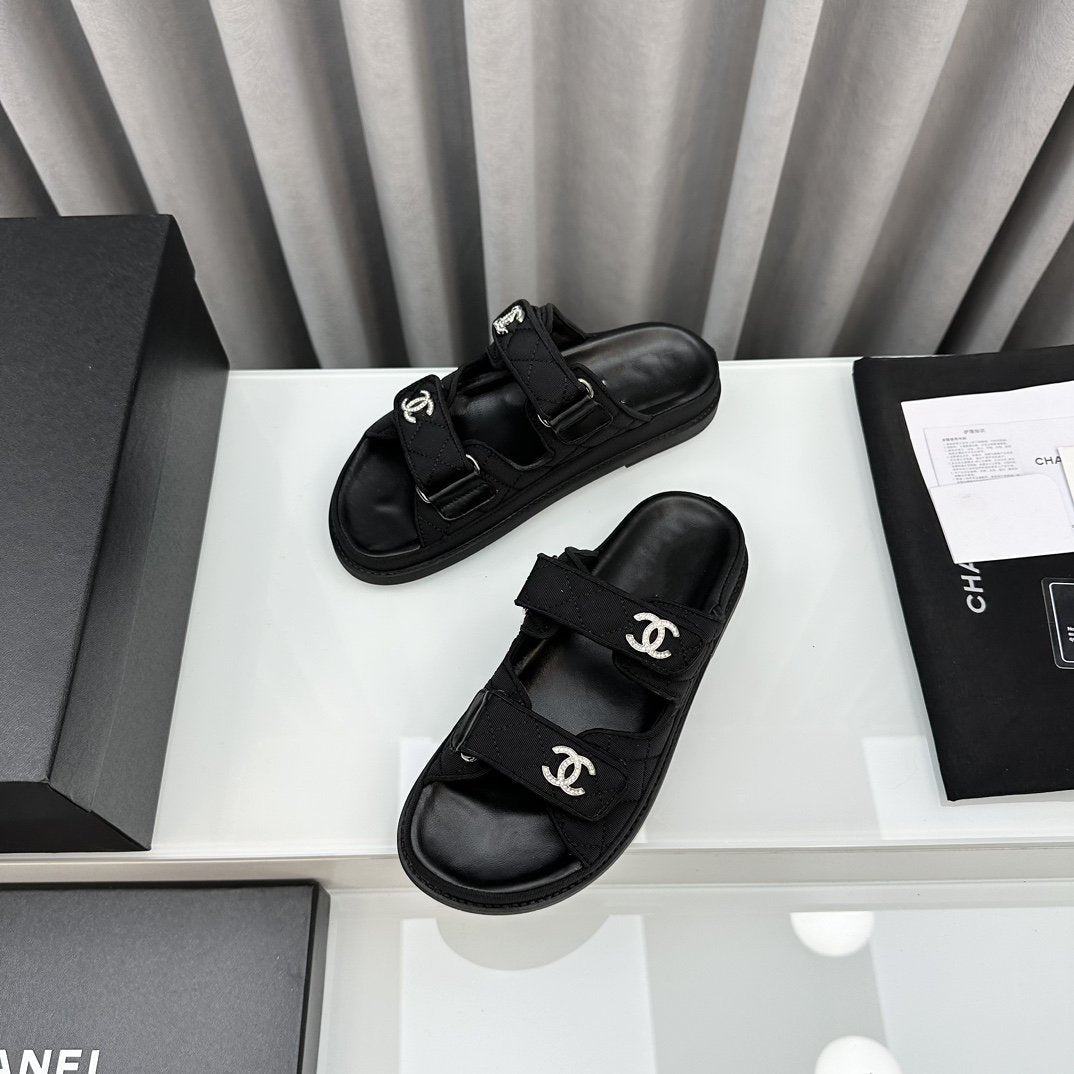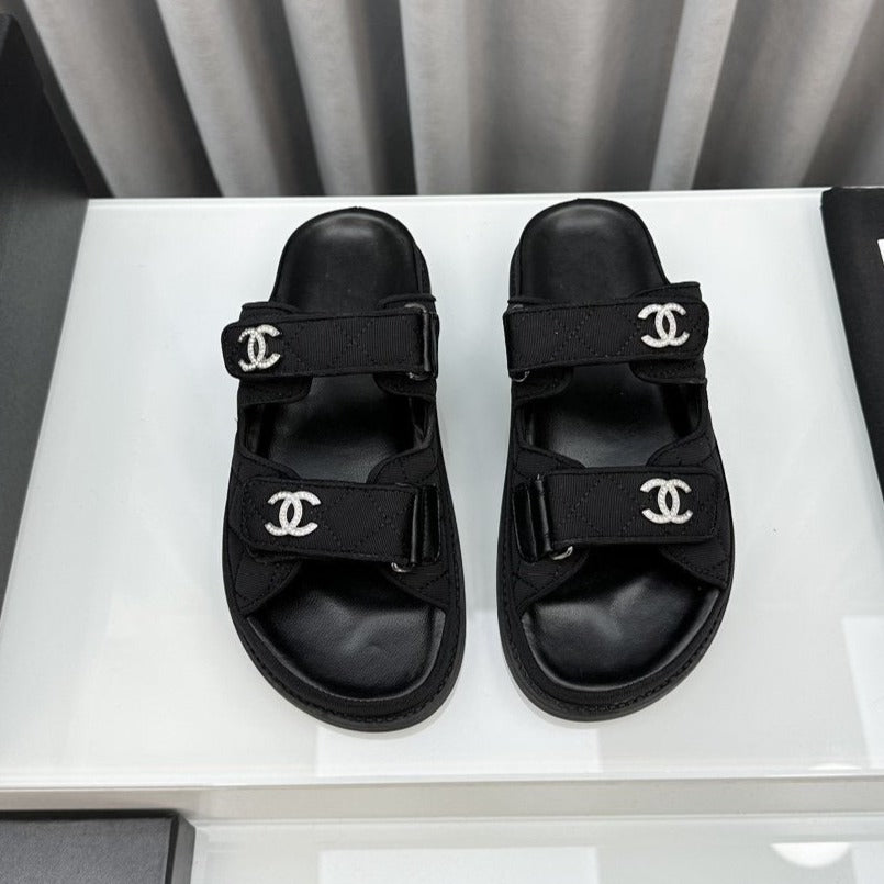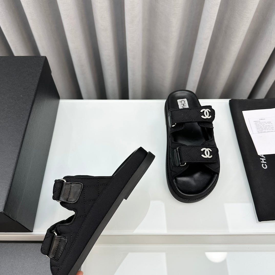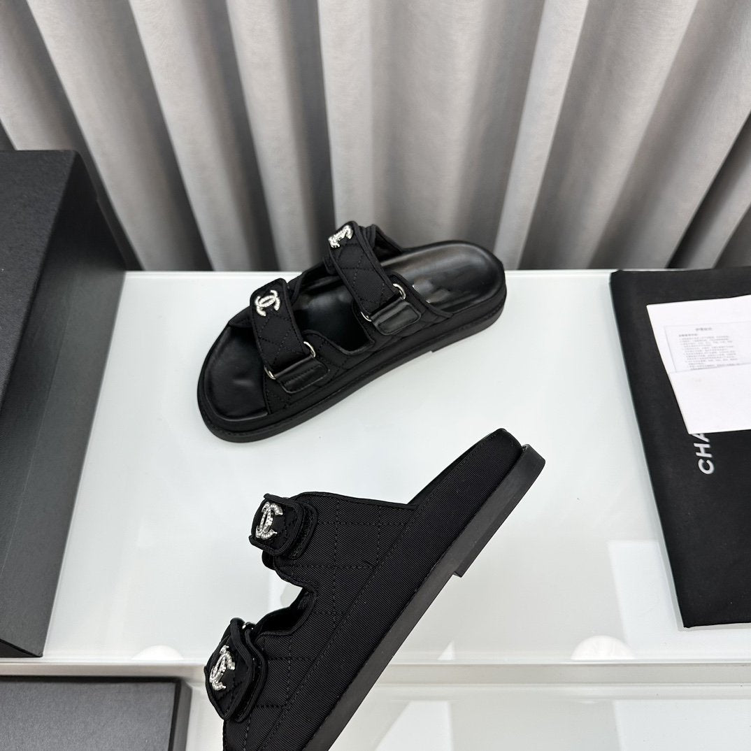 dad sandals black textile mules