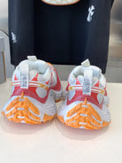 DAD SHOES IN RED ORANGE AND DUST WHITE MESH AND CALFSKIN