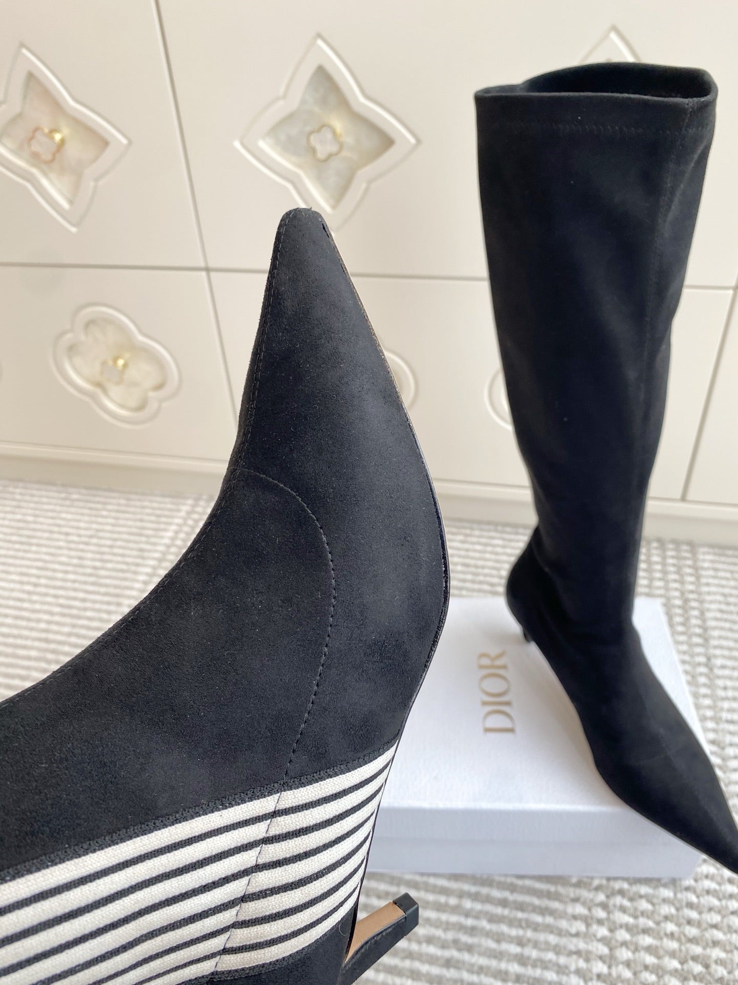 Dior 2025 Tribales Heeled Ankle High Boot 50mm Black White Suede 501201