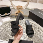 cc mule sandal tripe strap 40 beige canvas calfskin