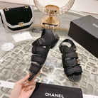 cc slingback sandal tripe strap black canvas calfskin