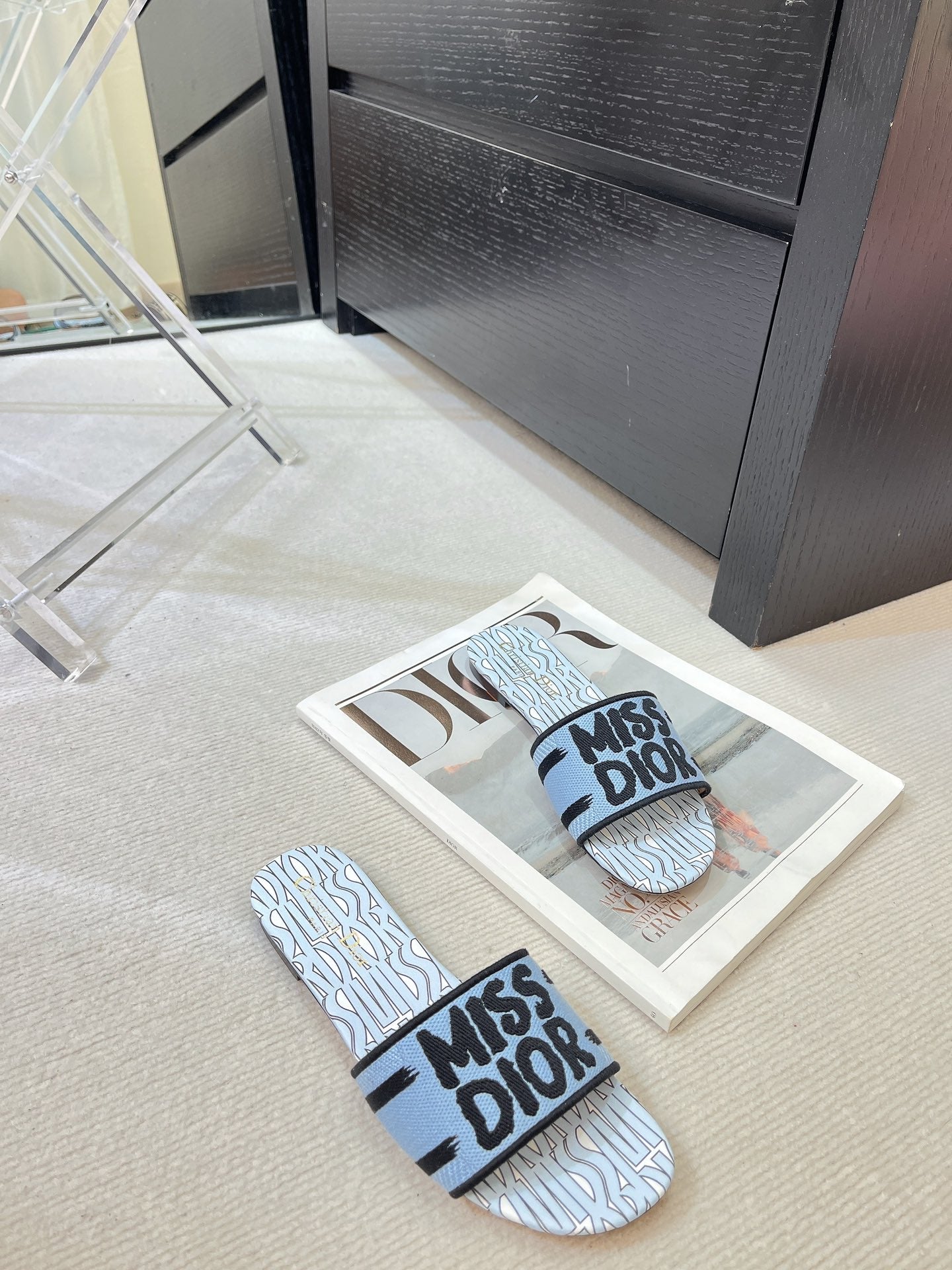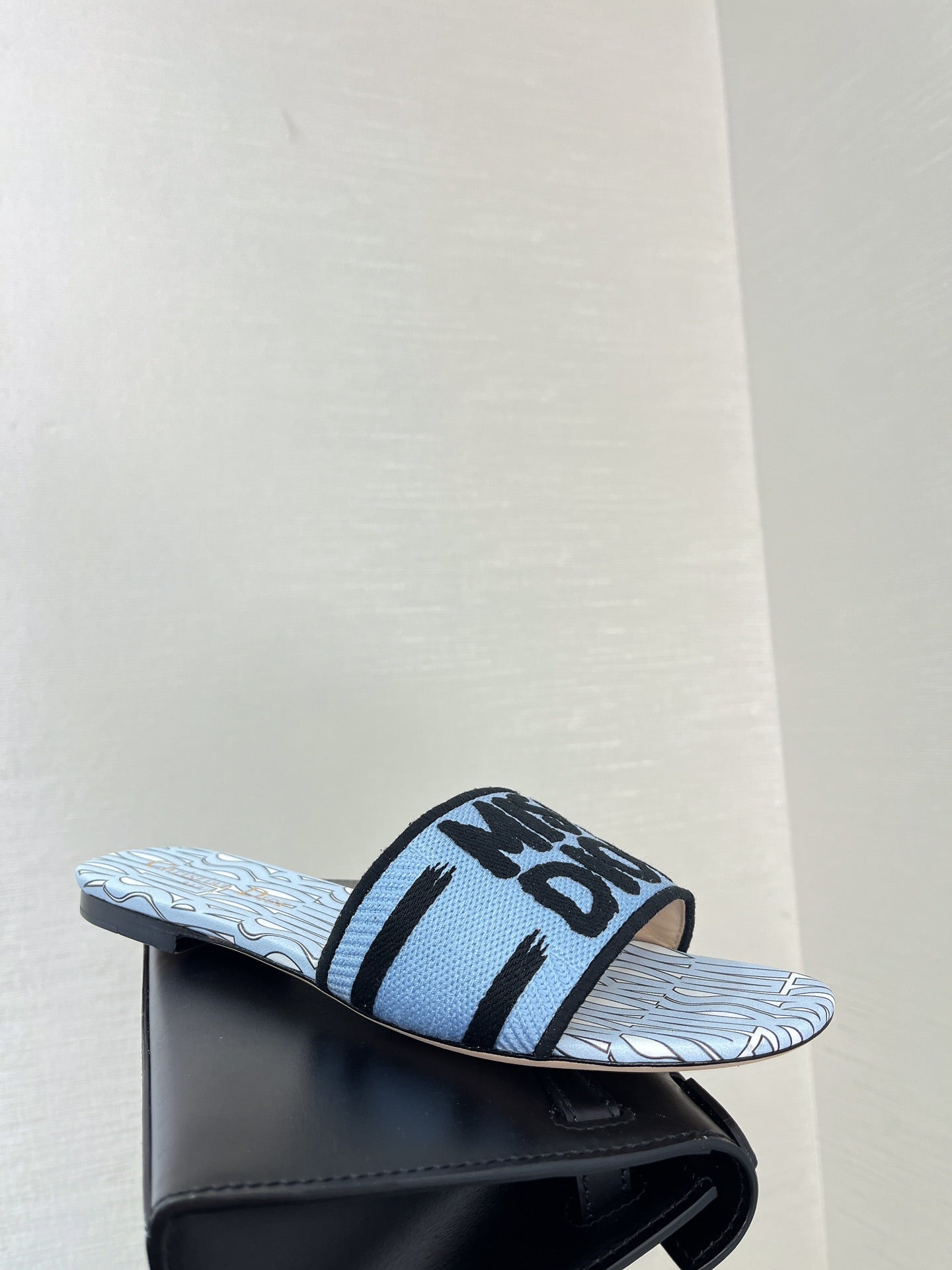 dway slide embroidered cotton cloud blue miss cd alllover motif