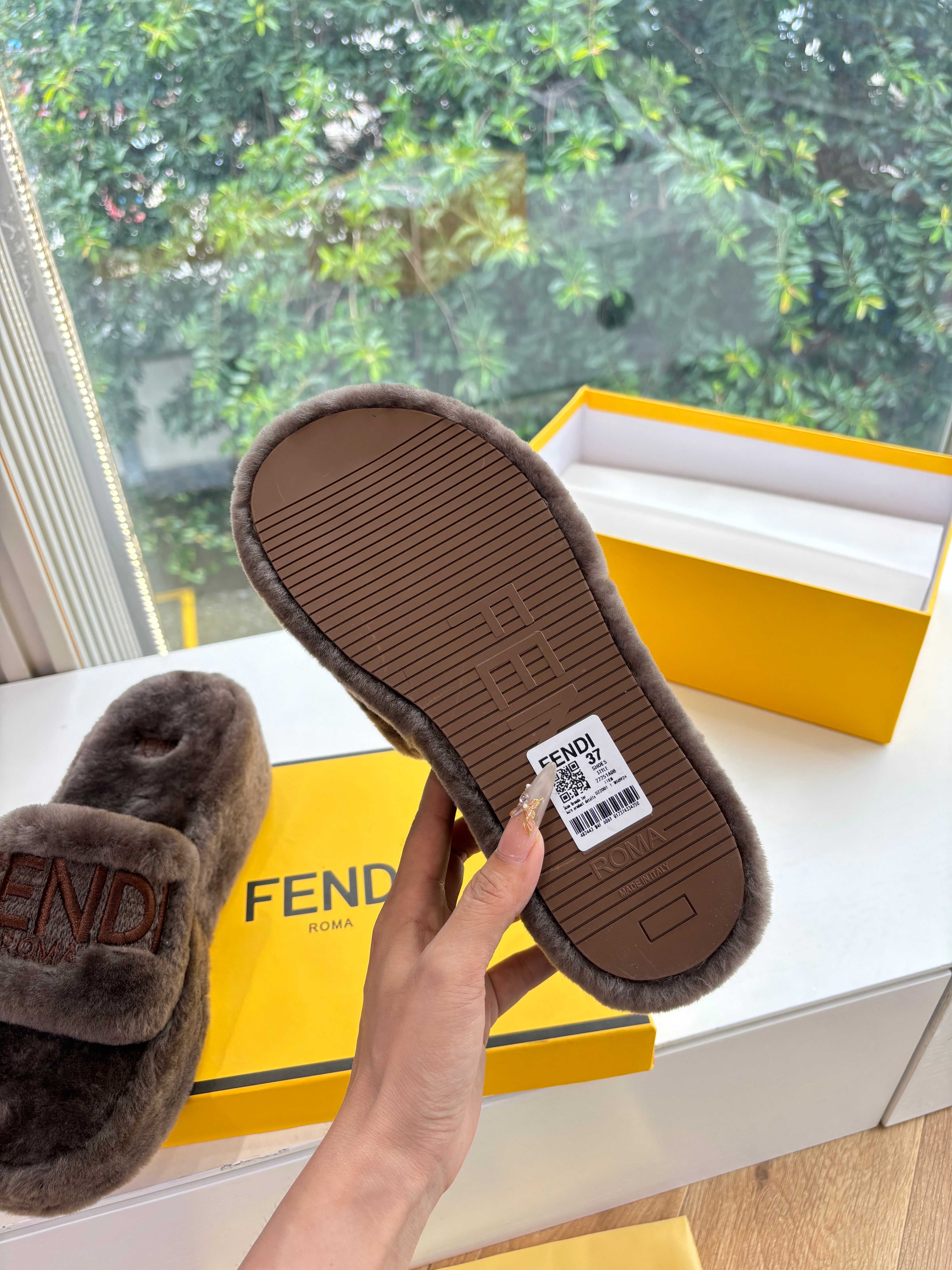 Fendi 25ss slippers taupe brown wool 507103