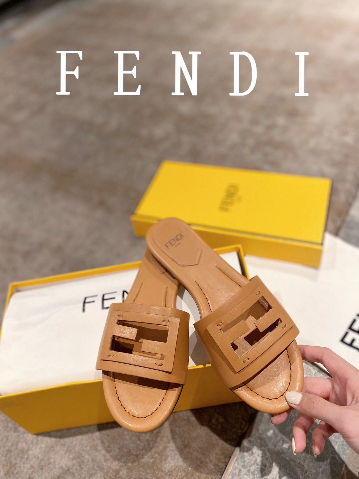 FENDI BAGUETTE SLIDES IN COPPER BROWN LAMBSKIN