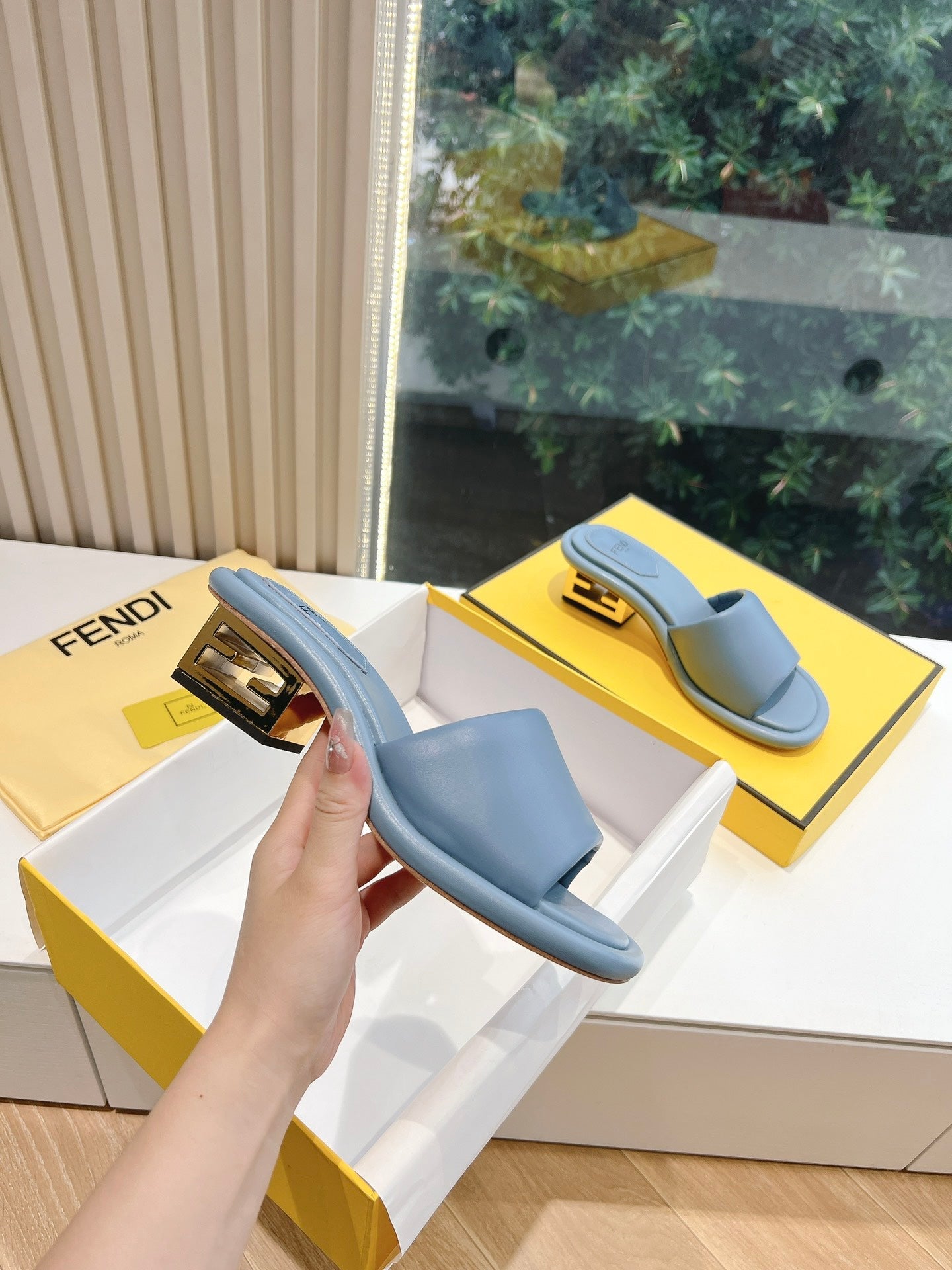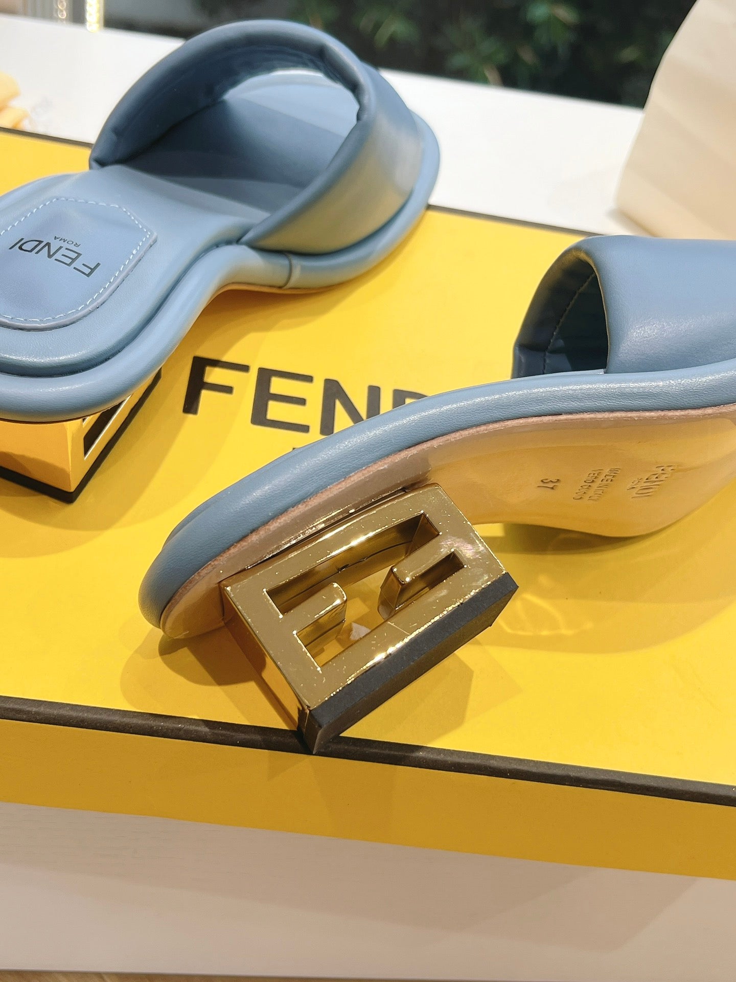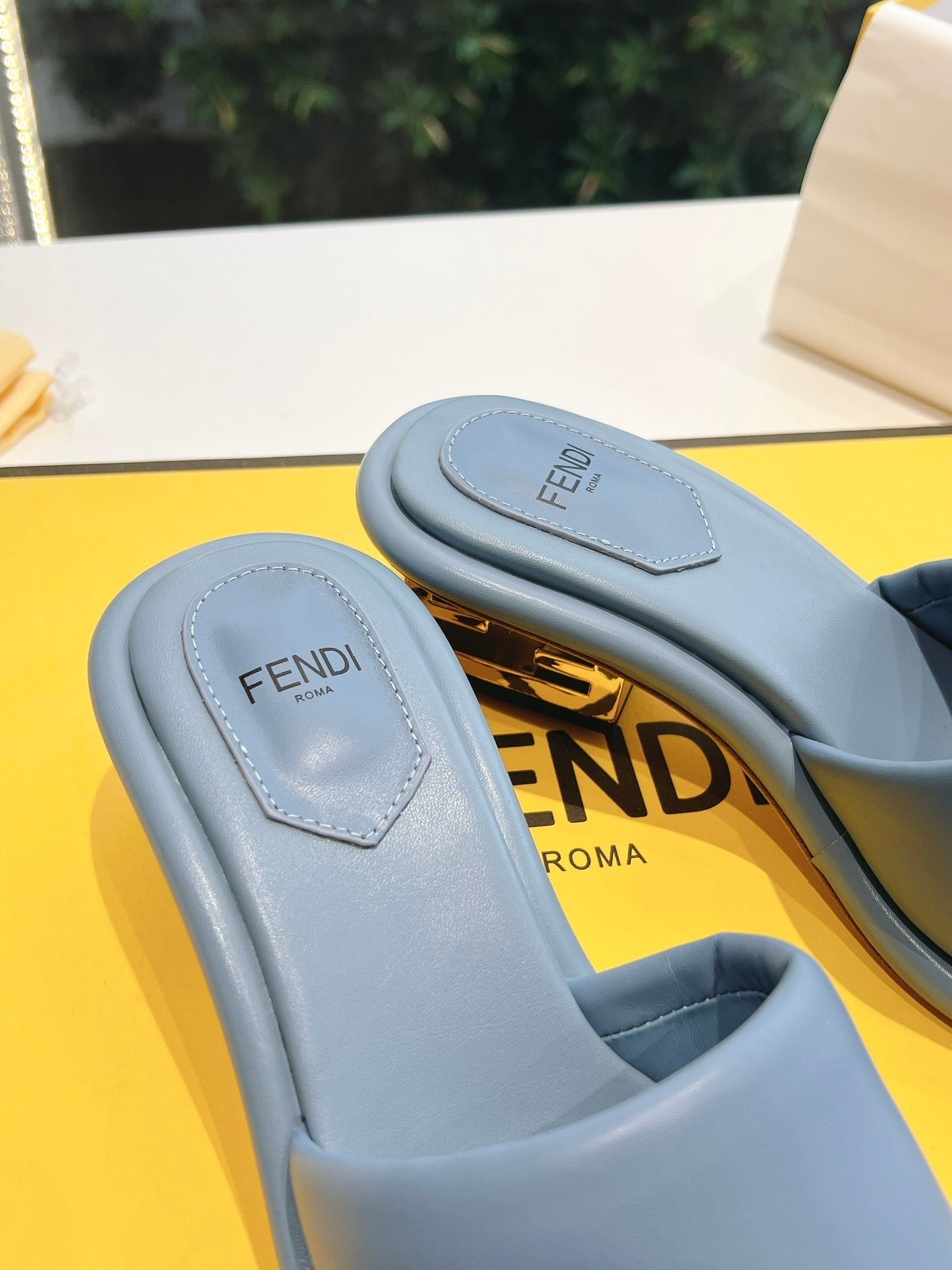 FF Baguette Slides Women 45 Nappa Leather Baby Blue