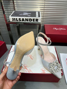 Flower Strass Buckle Slingback Pump 90 Grey Satin