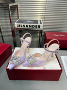 Flower Strass Buckle Slingback Pump 90 Violet Satin