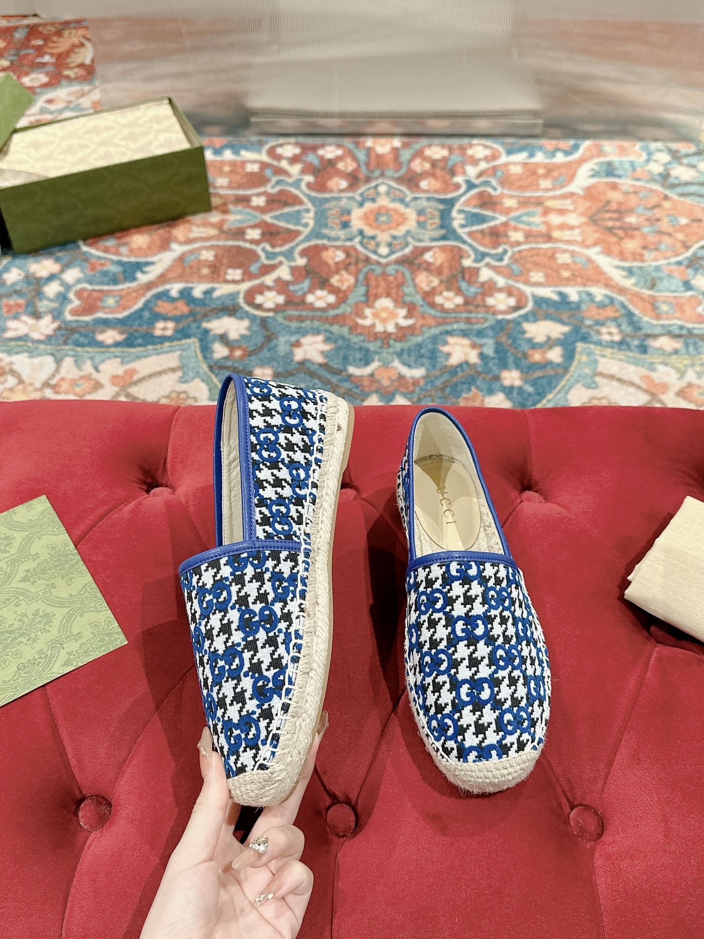GG ESPADRILLE LOAFER COBALT AND BLACK CANVAS