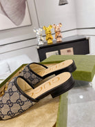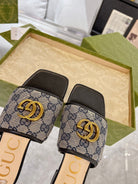 GG EXCLUSIVE SLIDE SANDAL BLACK AND CHARCOAL FABRIC