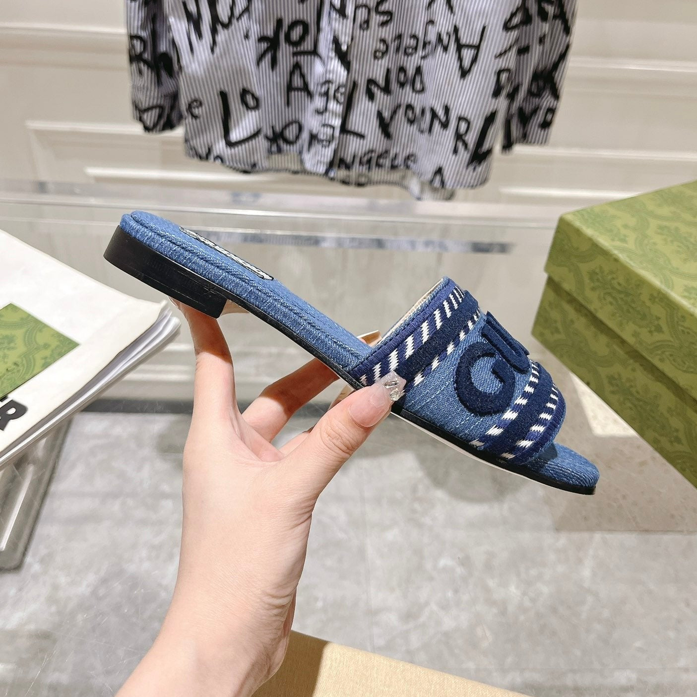GG Interlocking double G hollow slippers Neon Blue
