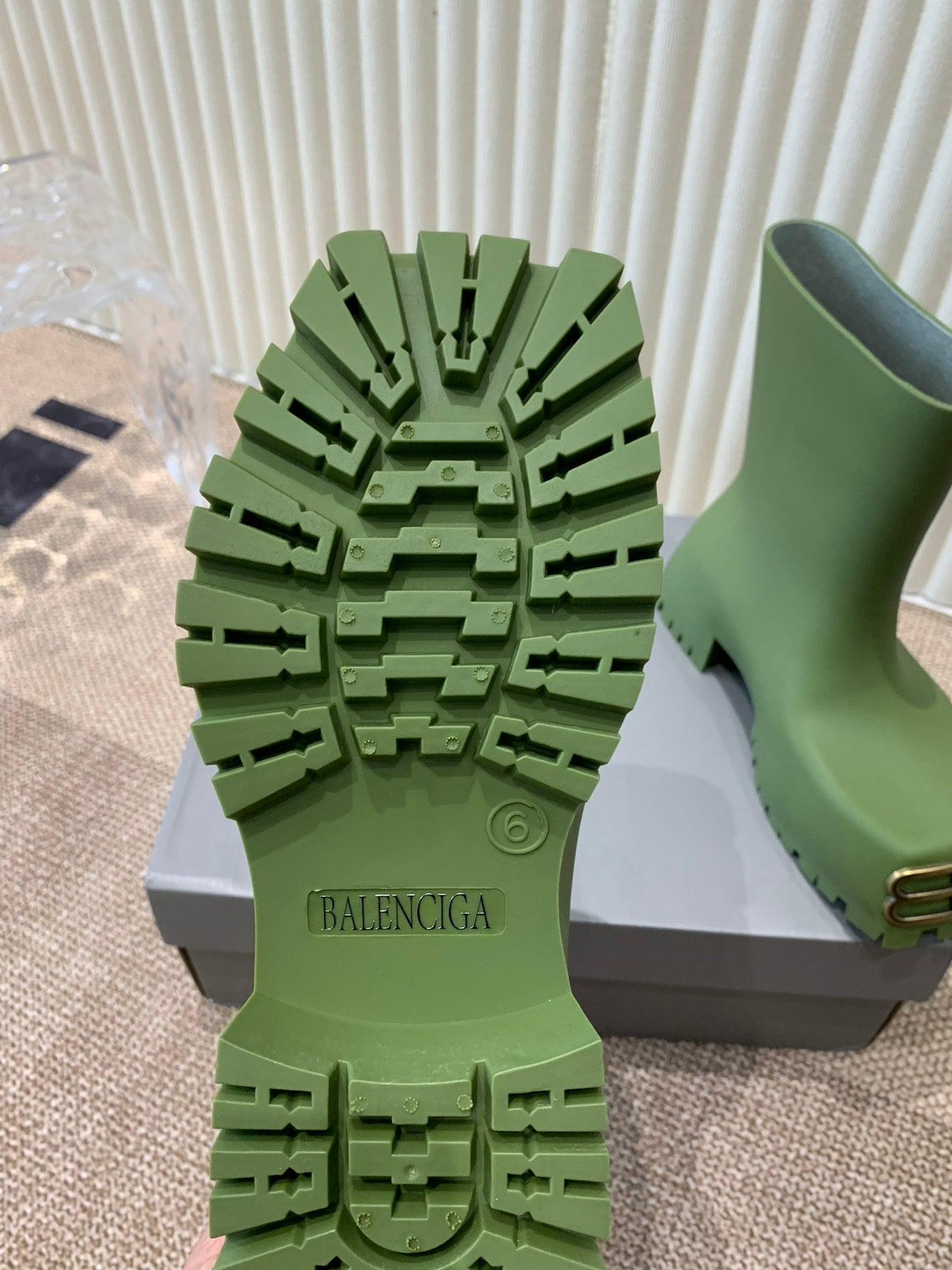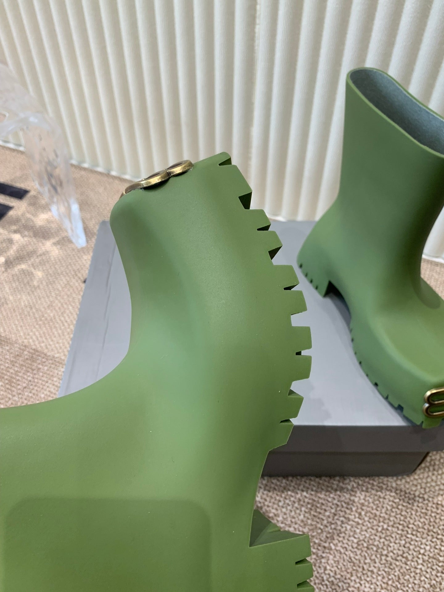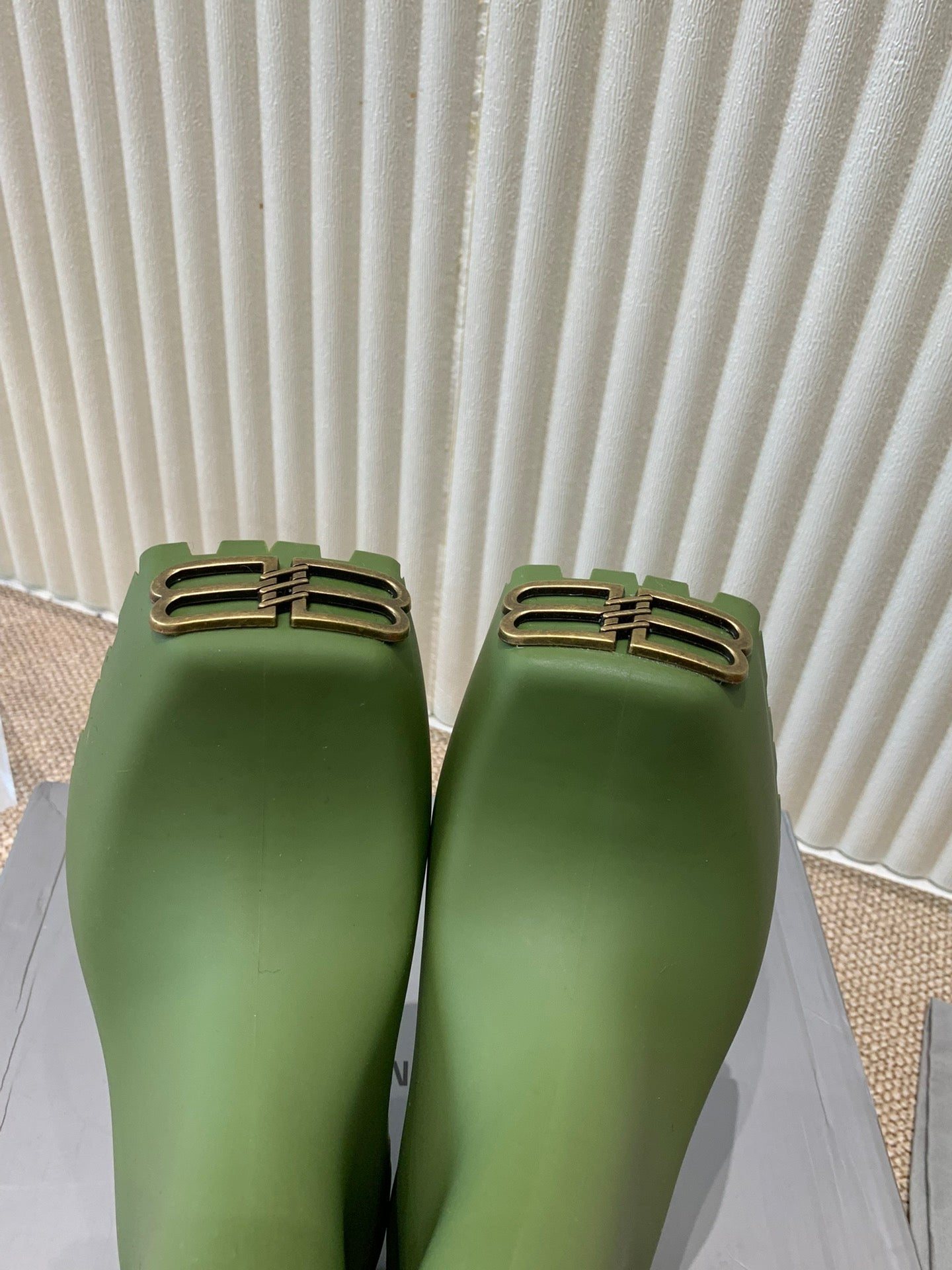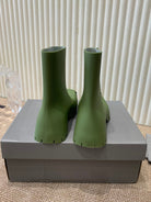 GREEN SCULPTED RUBBER BOOTS WITH GOLD MONOGRAM