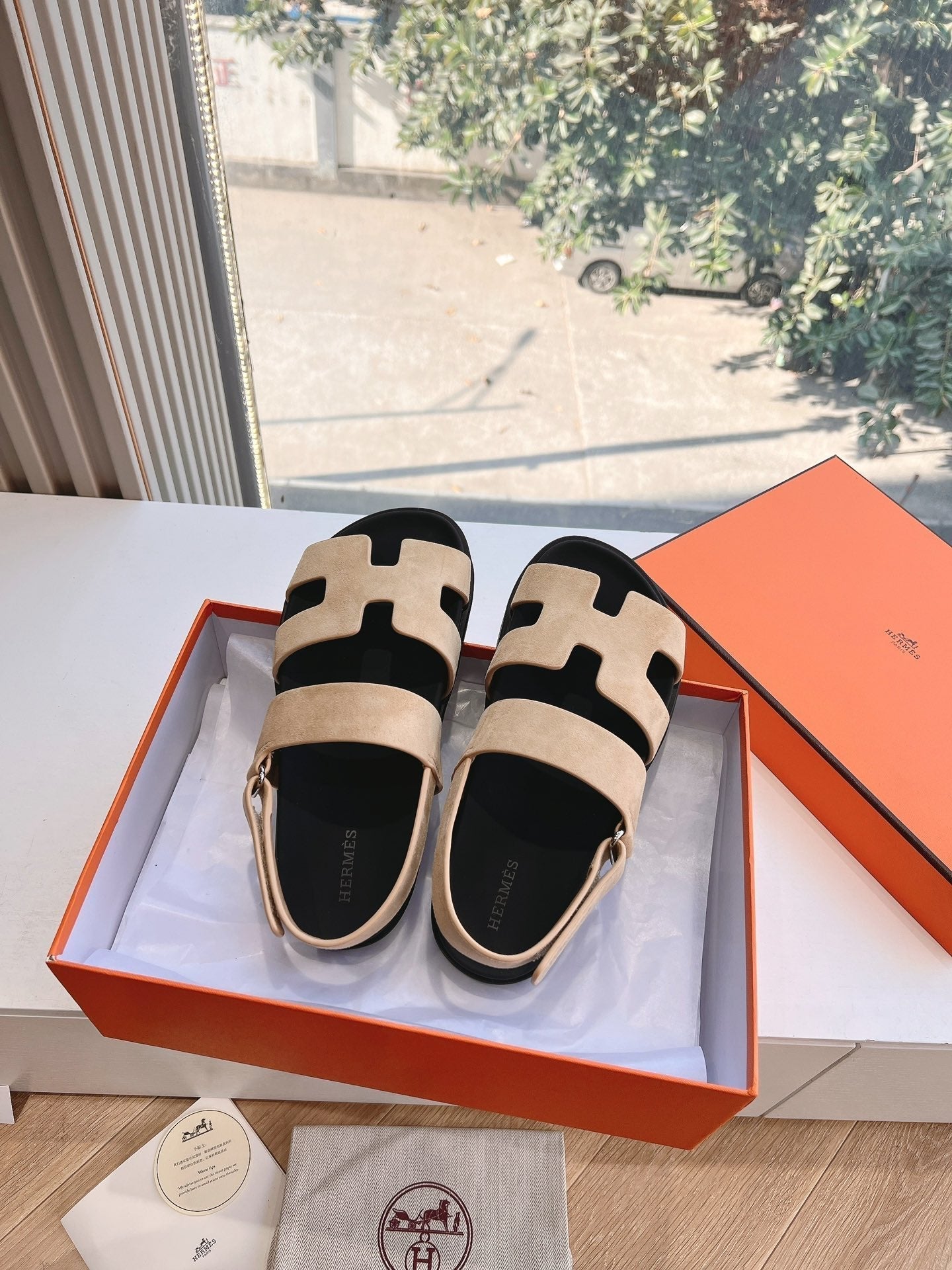 HM 25 Genius Sandal Beige Suede Black Calfskin