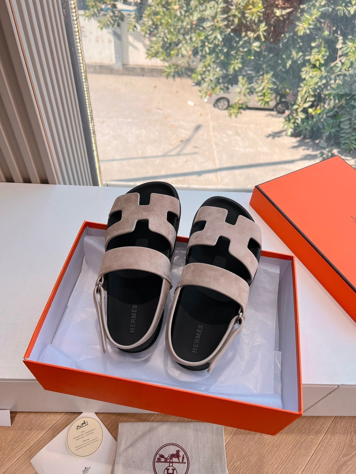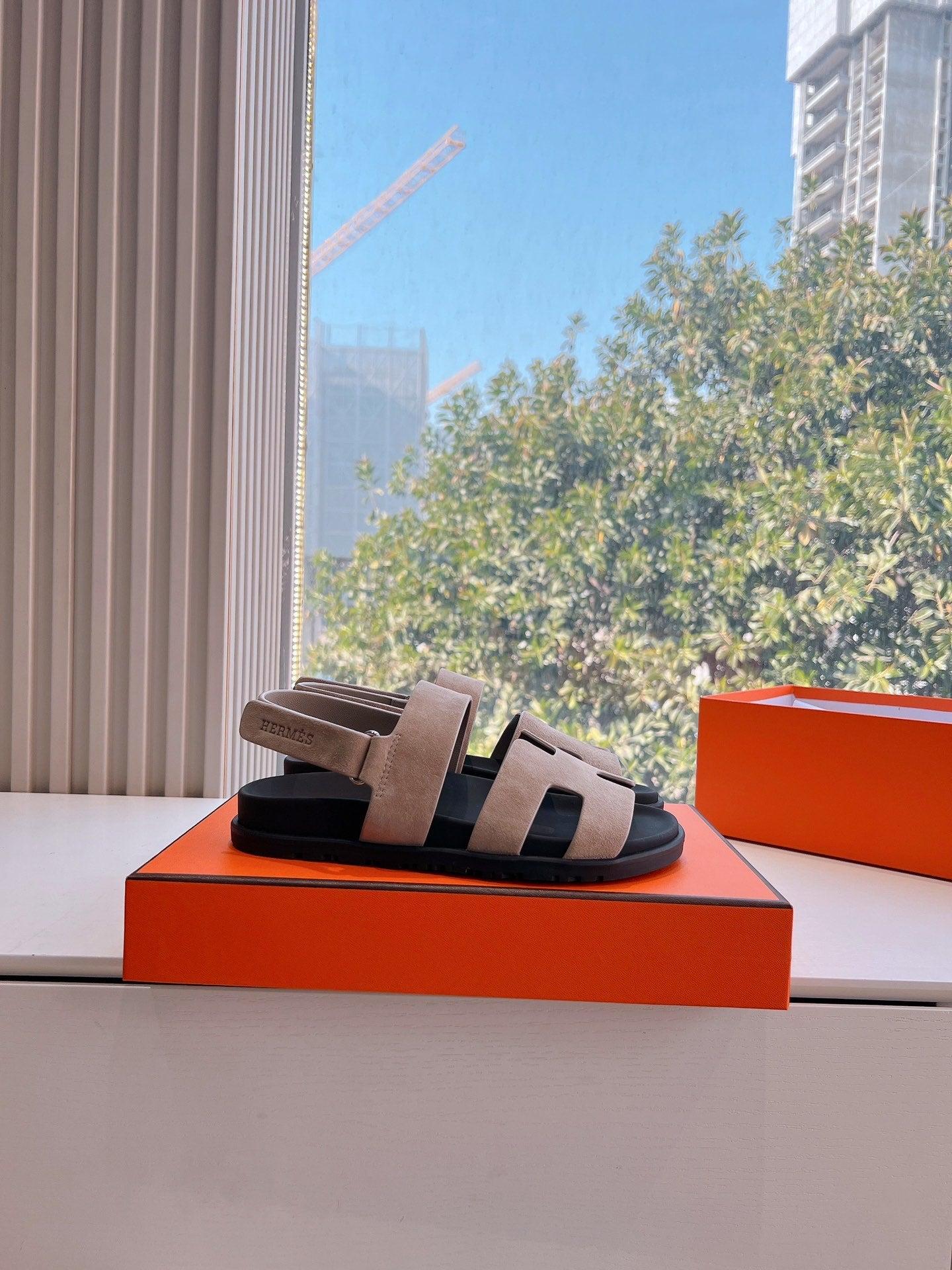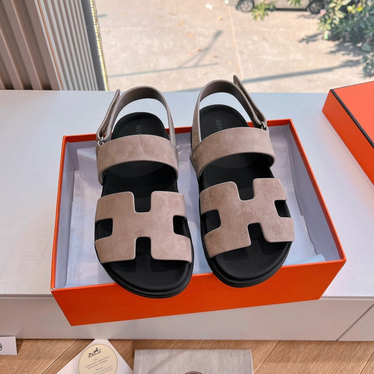 HM 25 Genius Sandal Rose Brown Suede Black Calfskin