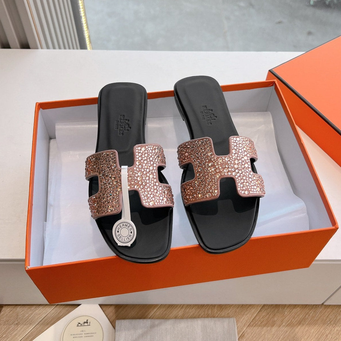 HM 25 Oran Sandal Black Nude Calfskin Rhinestone
