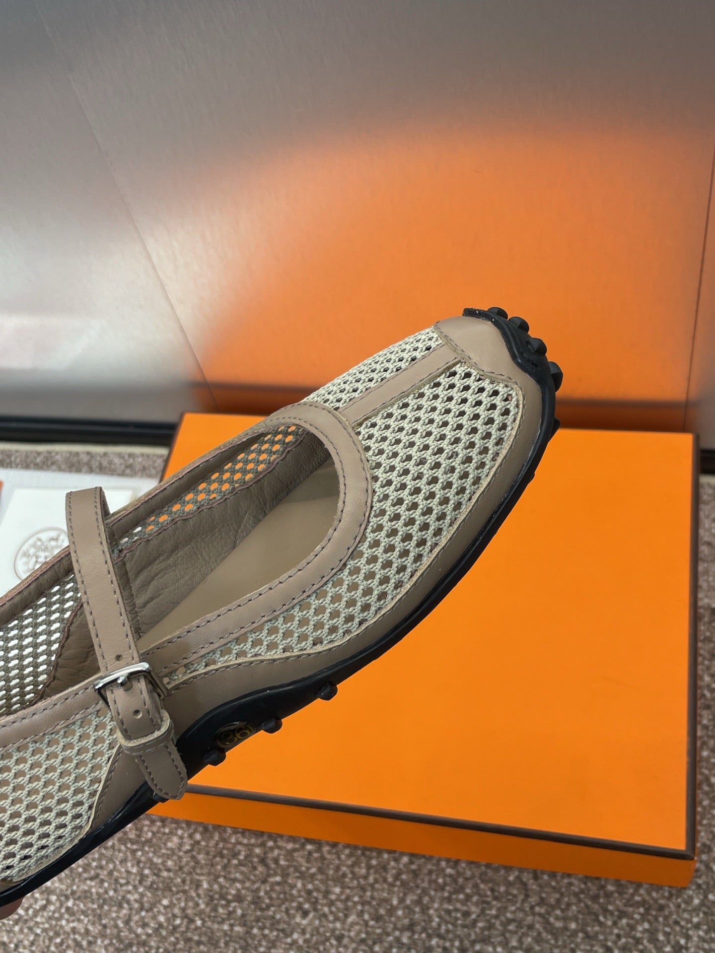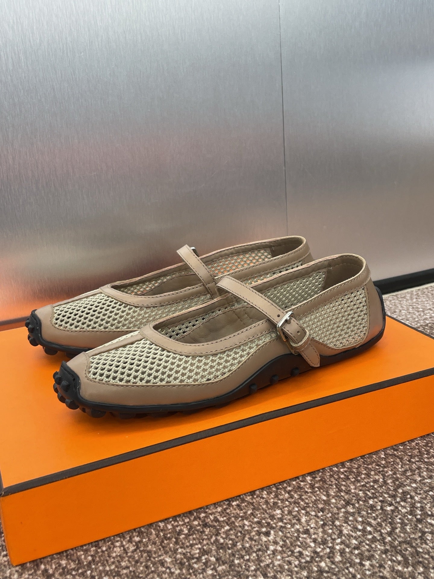 HM 25C Kichu Ballet Flat Tortilla Brown Fabric with Calfskin 208281