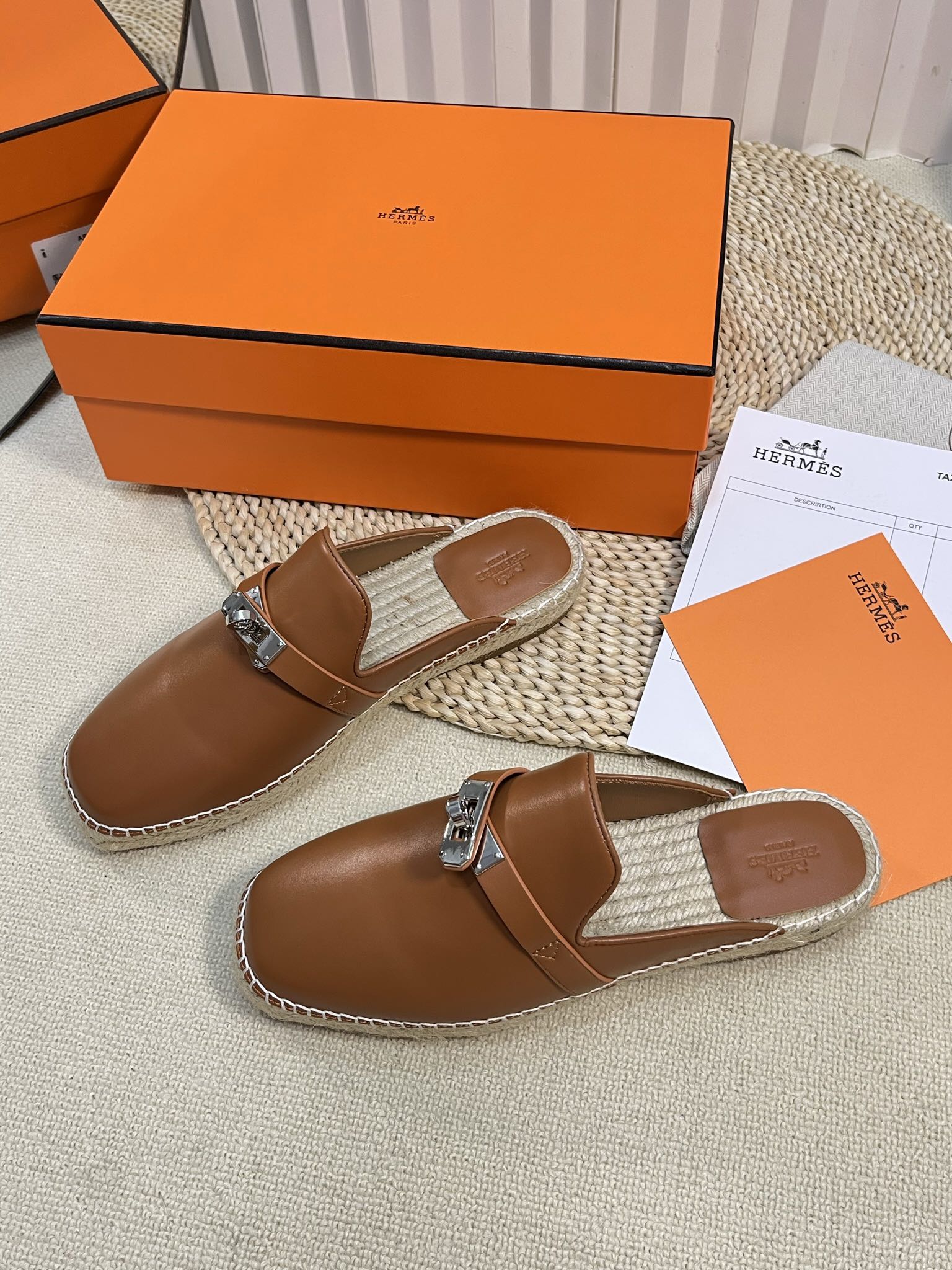 HM Feria Espadrille Mule Brown Calfskin