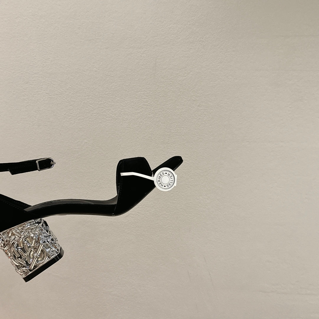 hm glam 60 wedged heel all black suede calfskin