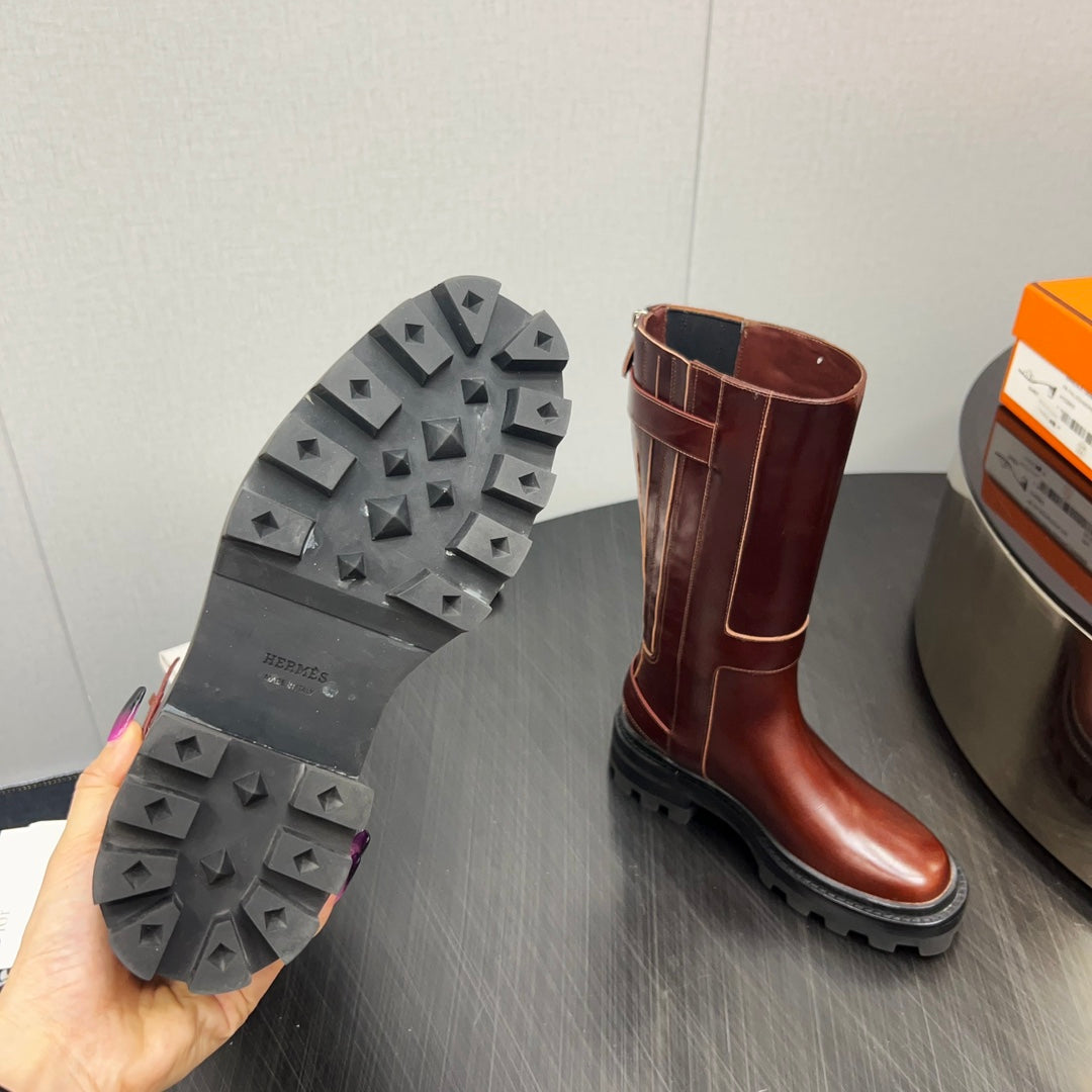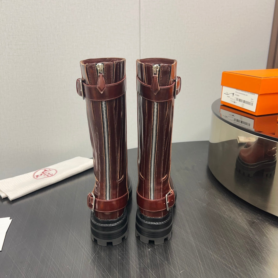 HM Jaimy High Boot 30mm In Red Brown Cowhide 952469