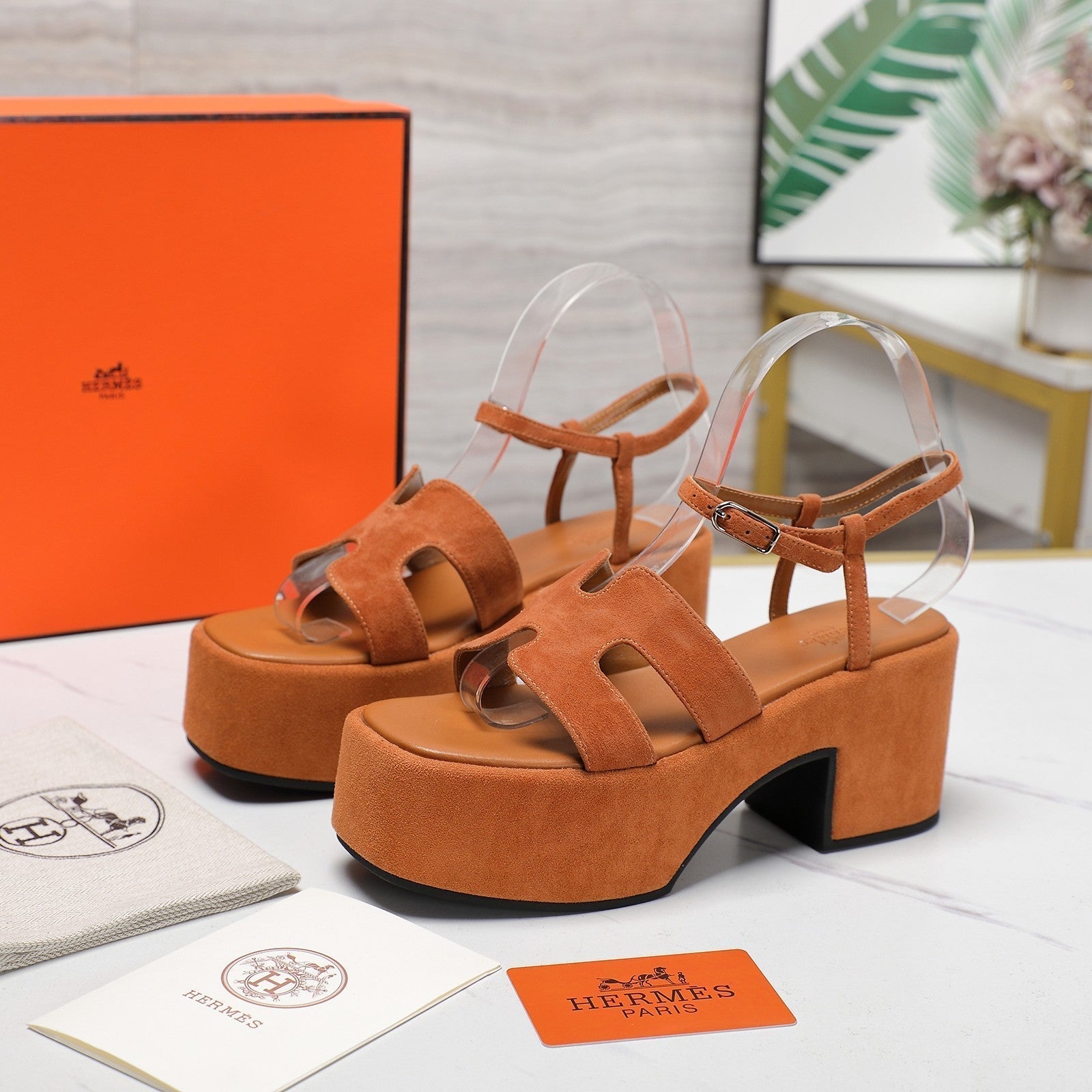 HM Jam 70 sandal In Brown Orange Suede 120311