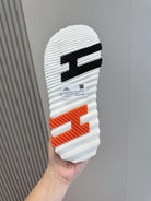 HM SLIPPERS BLACK AND NAVY MONOGRAM CANVAS