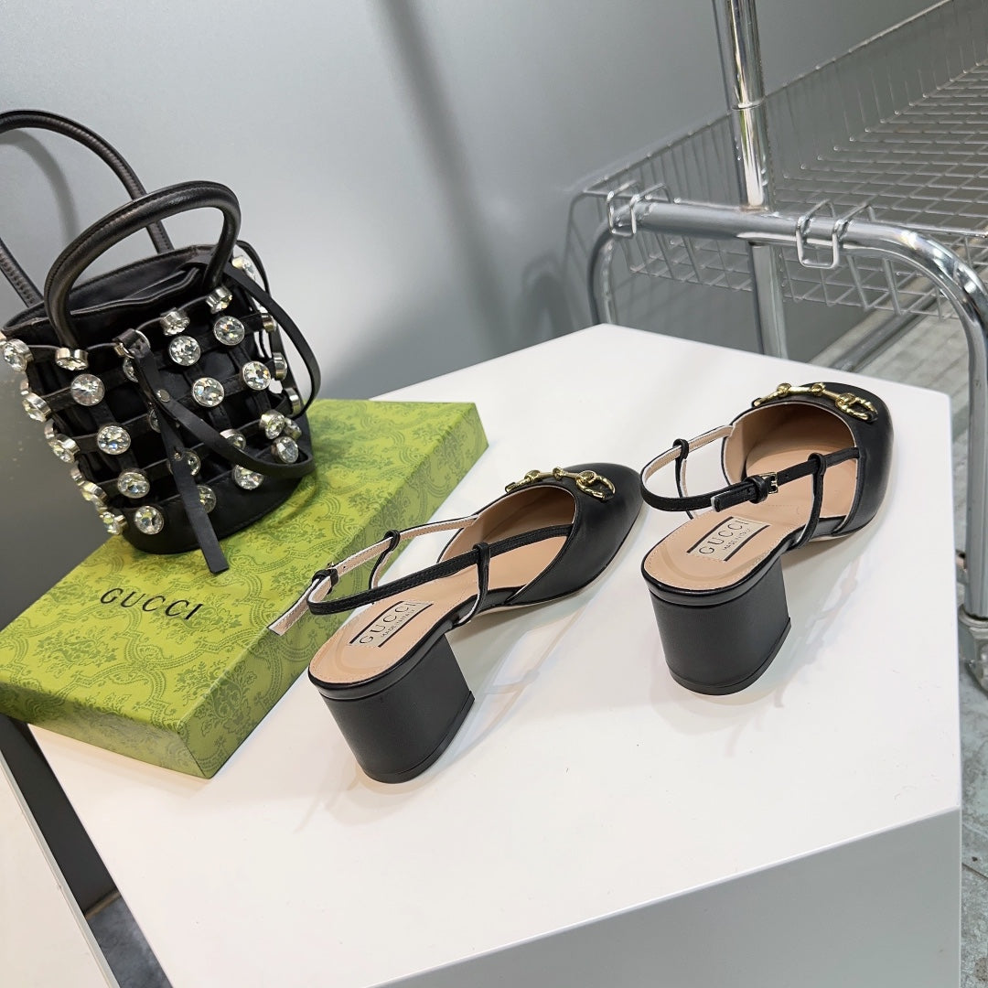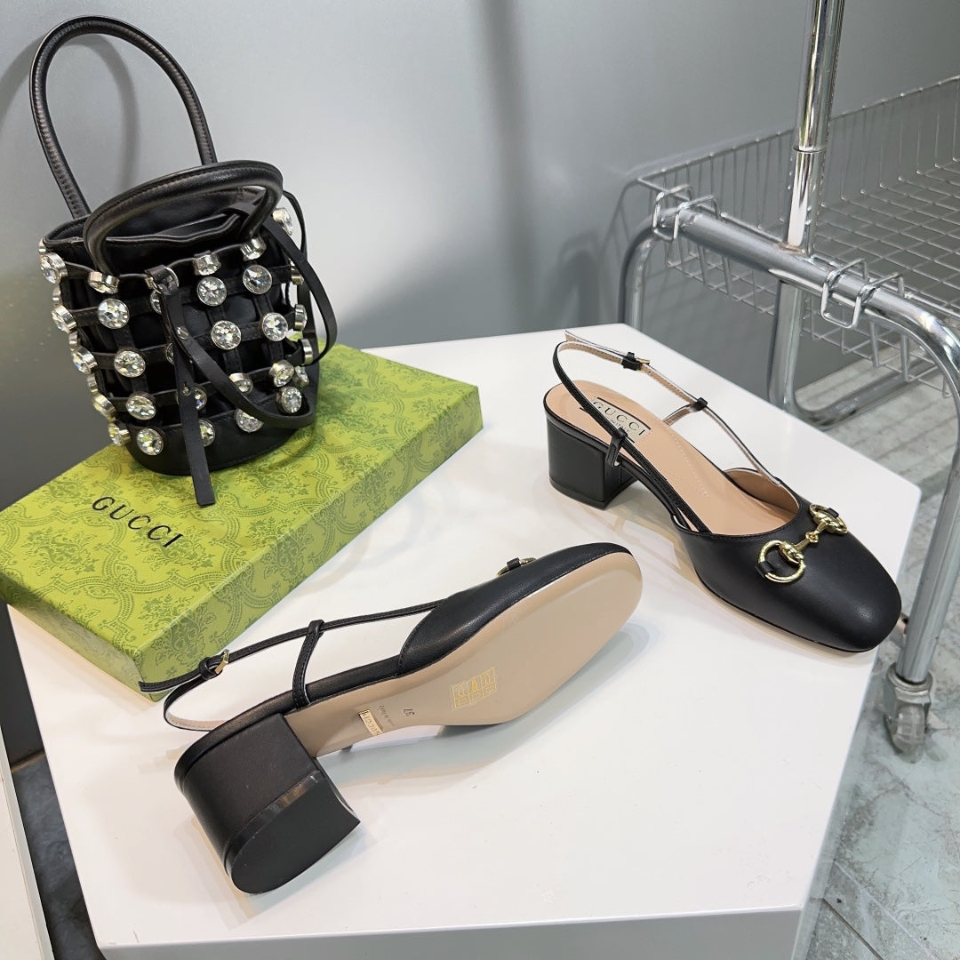 horsebit slingbacks pump 55mm black calfskin