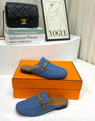 IENA MULE LAPIS CANVAS AND CARAMEL CALFSKIN