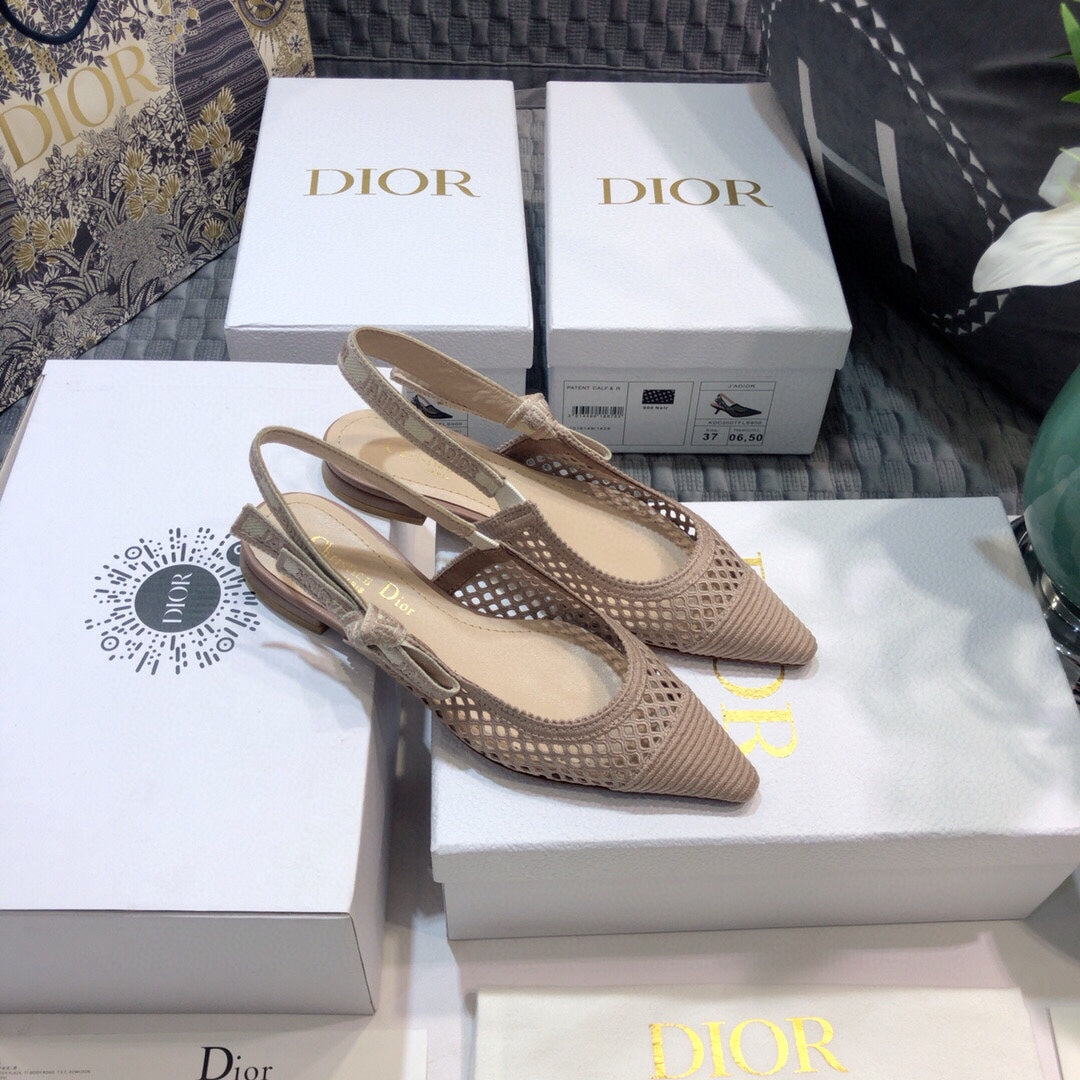 JAdior slingback flat transparent mesh rose canelle embroidered cotton