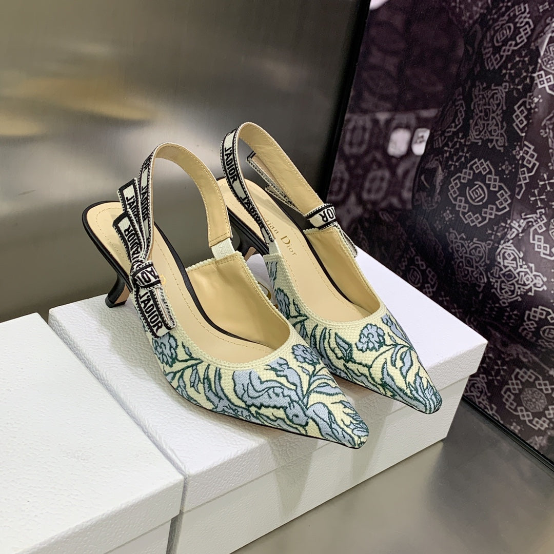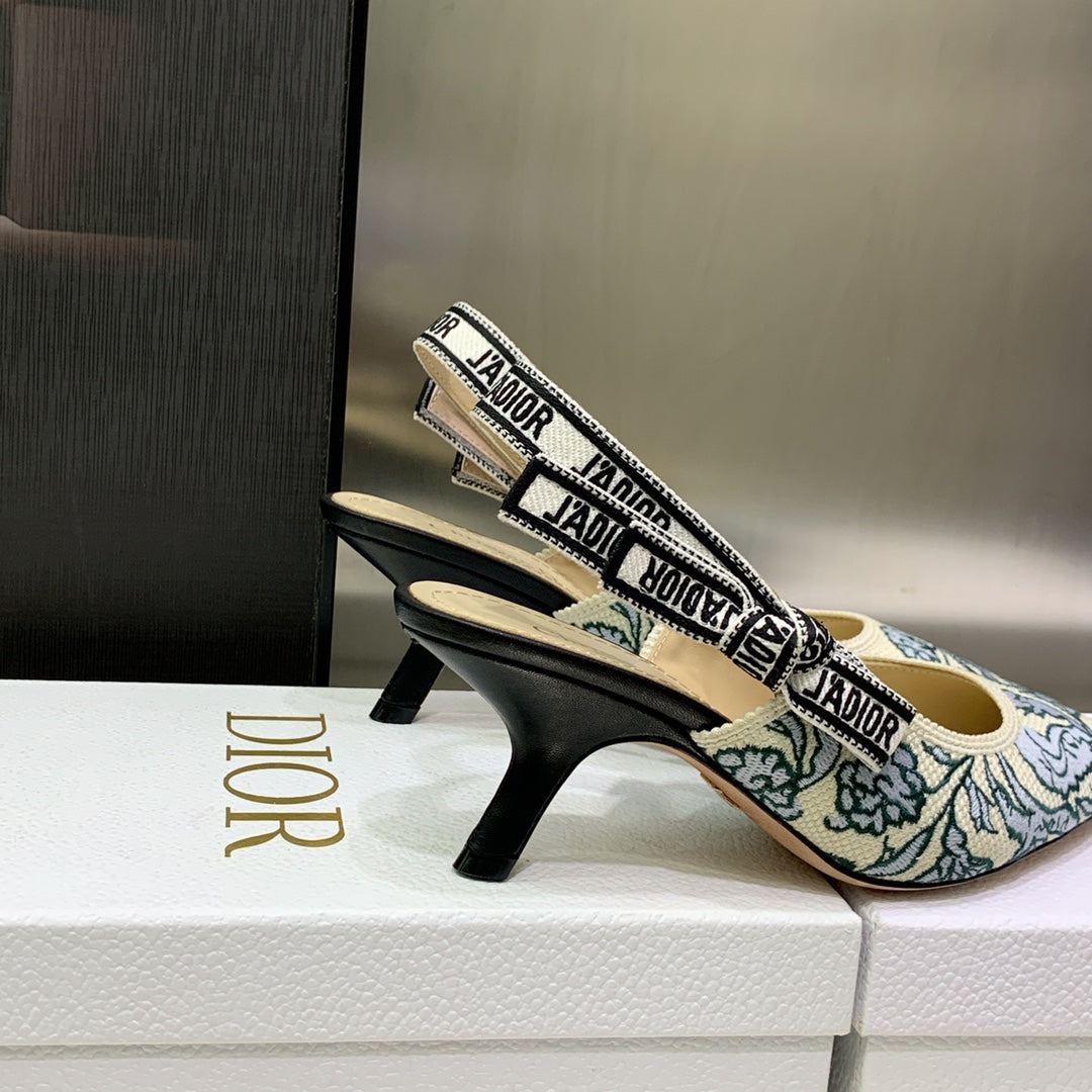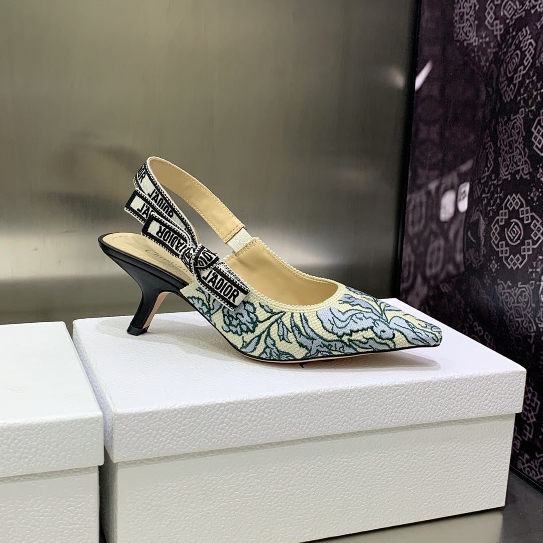 JAdior Slingback Pump 65 Duck Blue Embroidered Cotton with Gold-Tone Metallic Thread