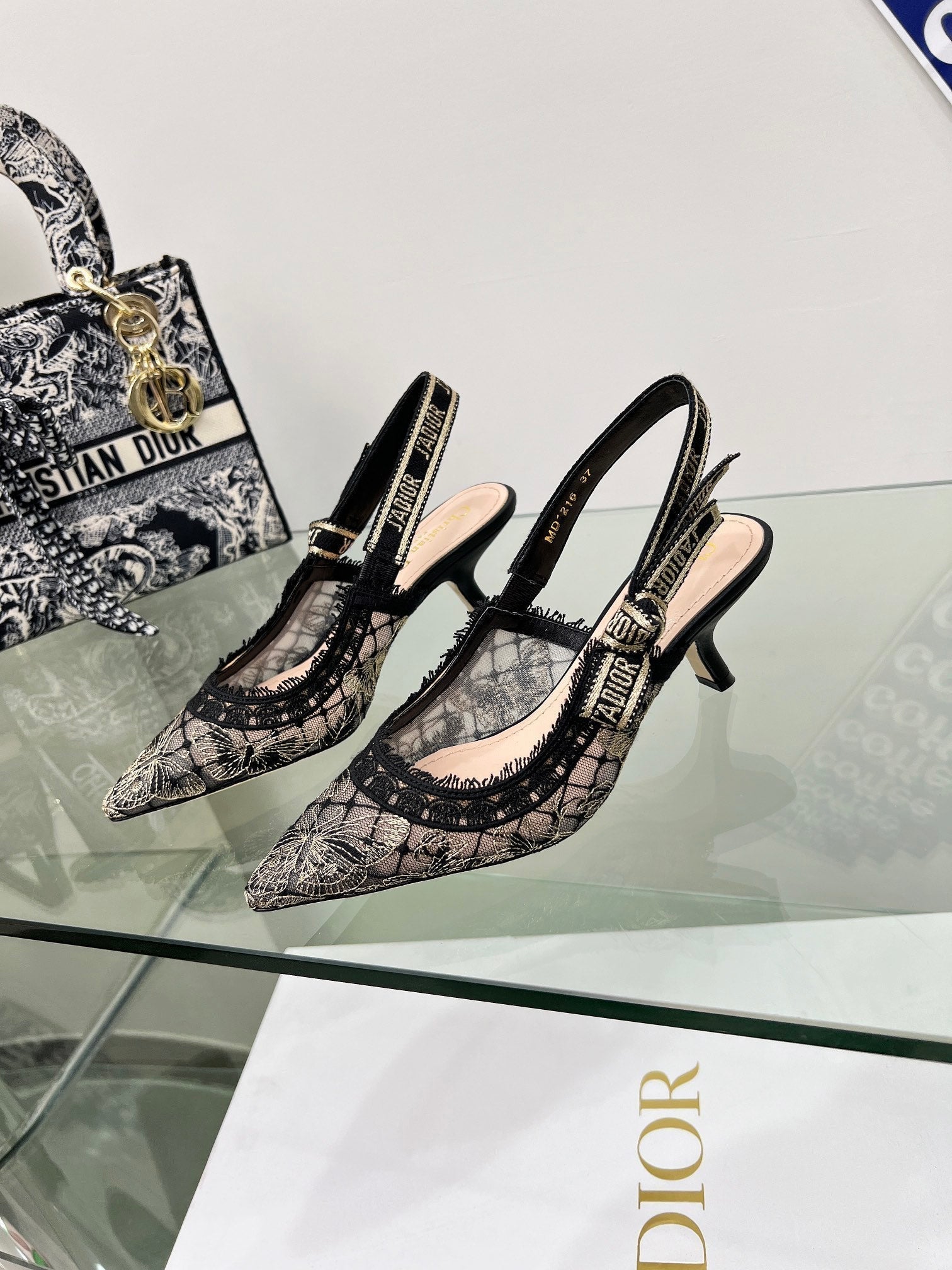 J'Adior Slingback Pump 65mm In Black Lace Fabric 100836