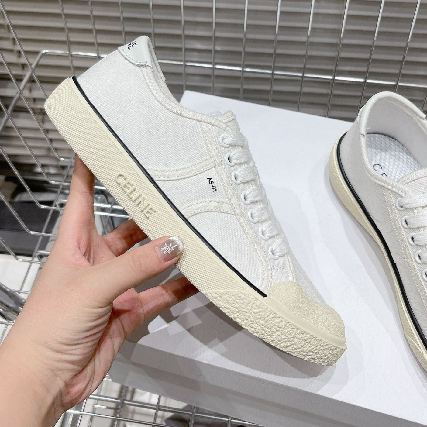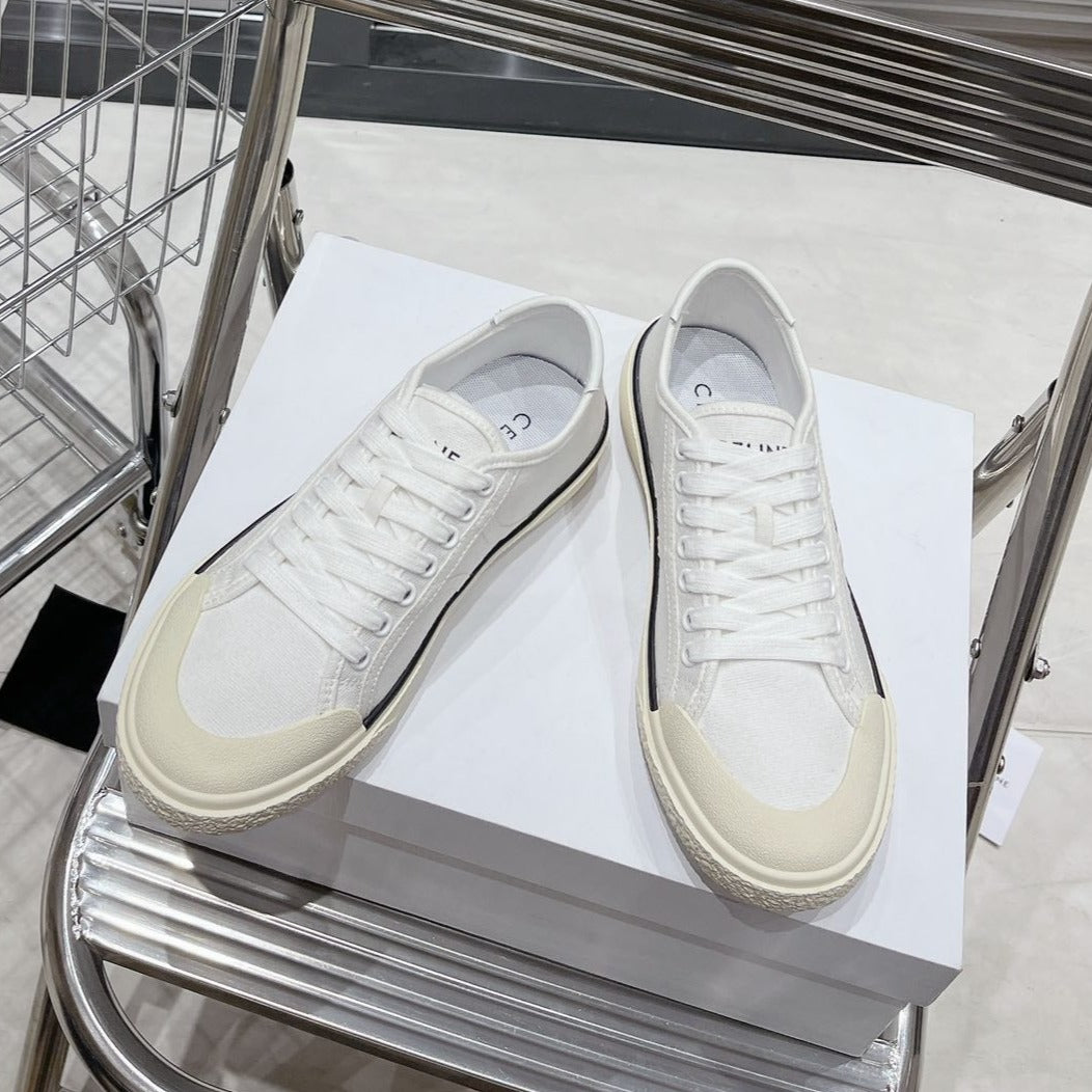 JANE SNEAKERS LOW LACE-UP WITH TRIOMPHE PATCH IN CANVAS AND CALFSKIN WHITE