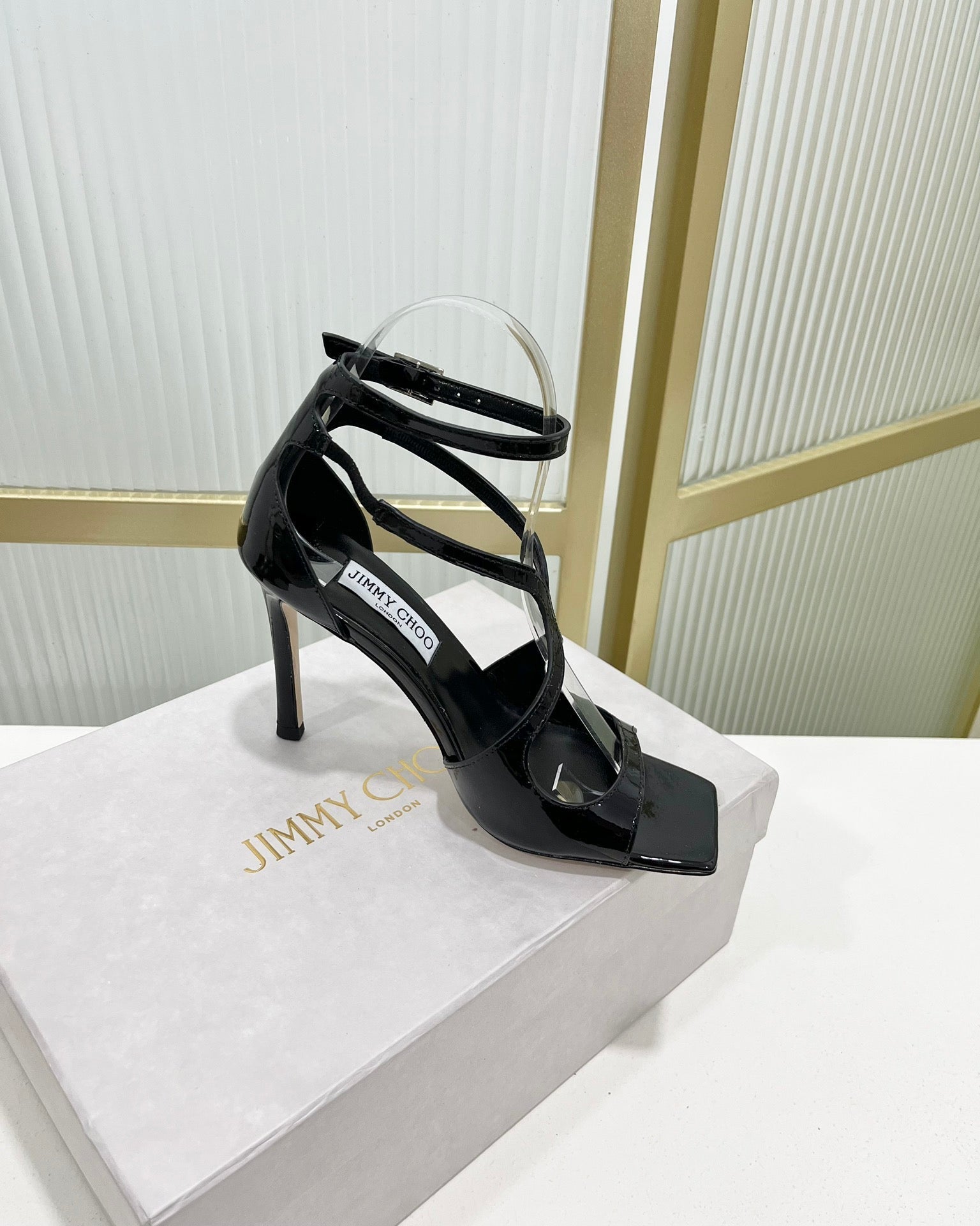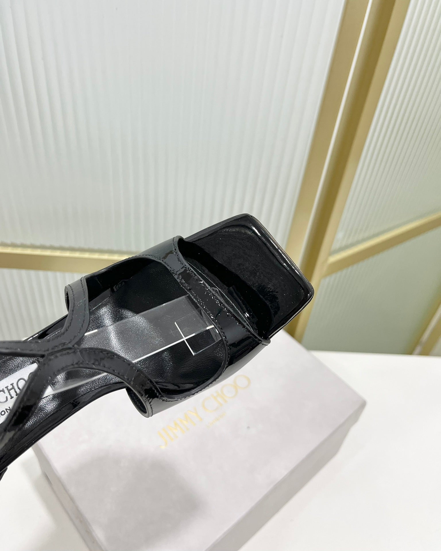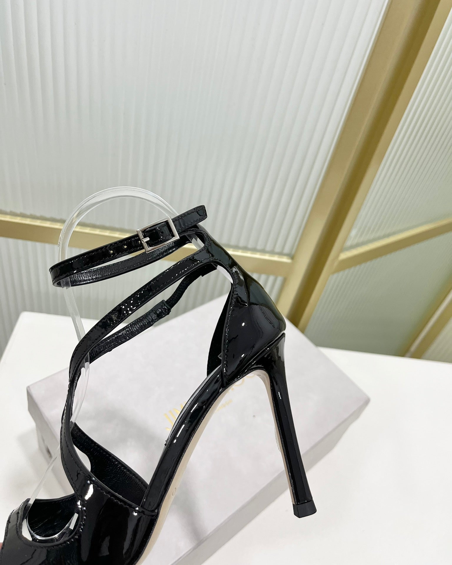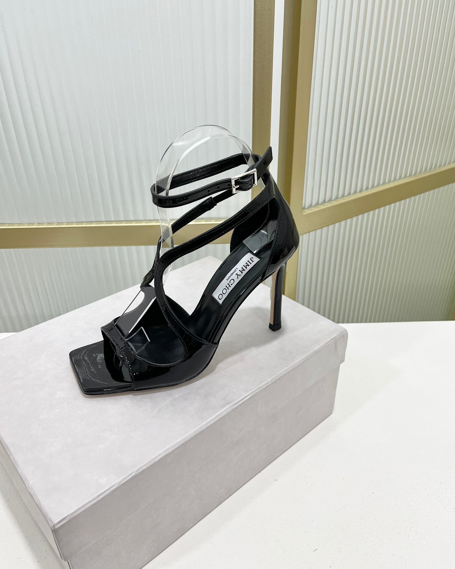 Jimmy Azia 95 In Black Glossy Cowhide Sandals 587707