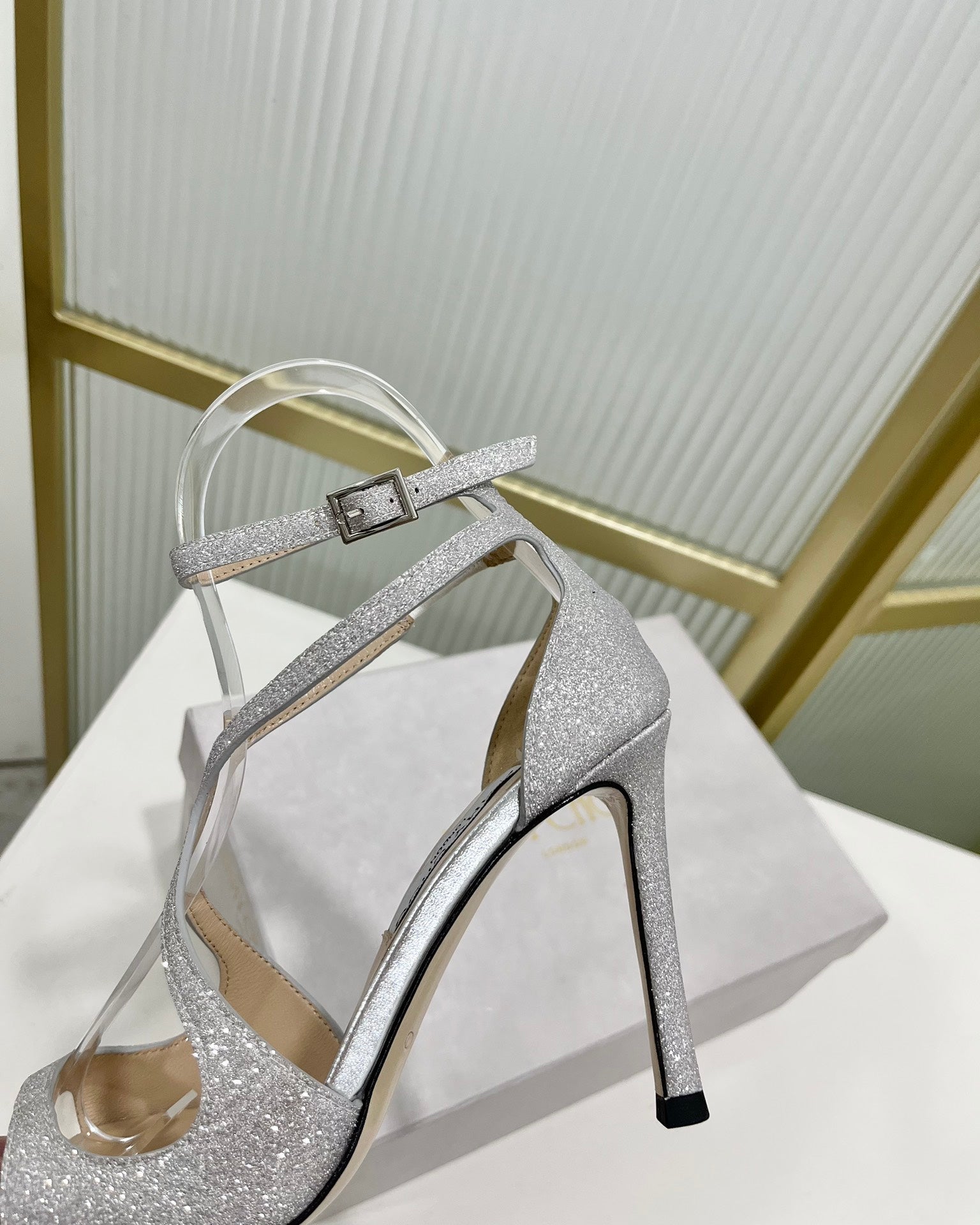 Jimmy Azia 95 In Silver Cowhide With Glitt Sandals 587711