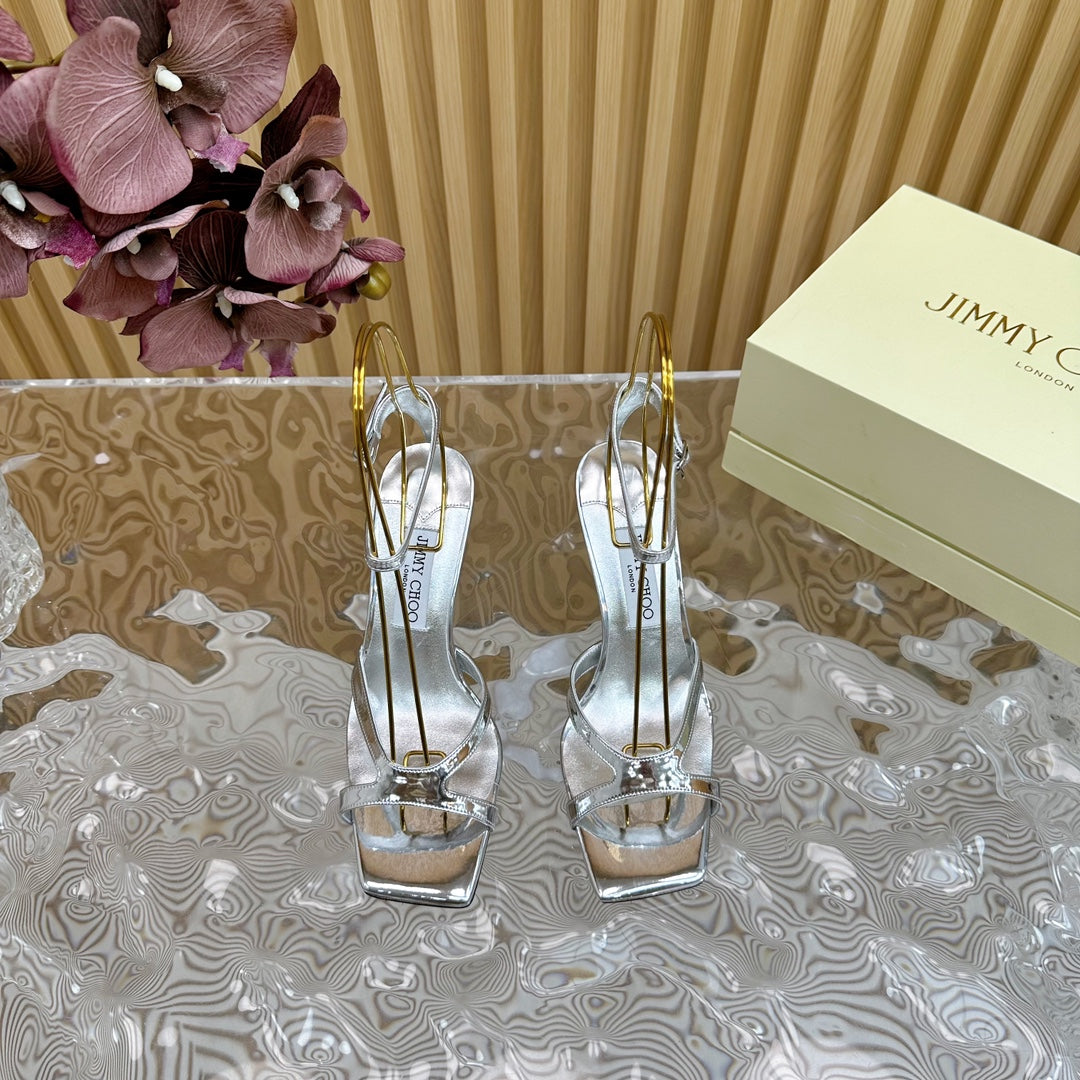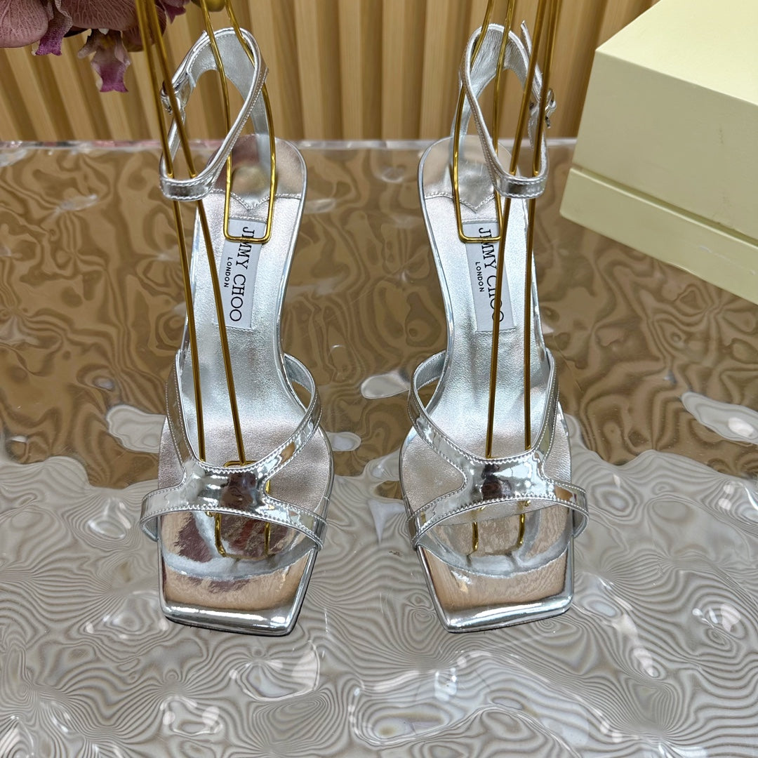 Jimmy Azie 85 In Silver Cowhide Sandals 581515