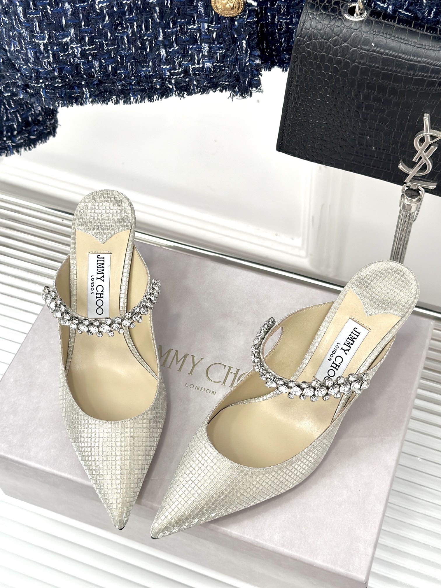 - Material: Stone Studded Cowhide, Lambskin