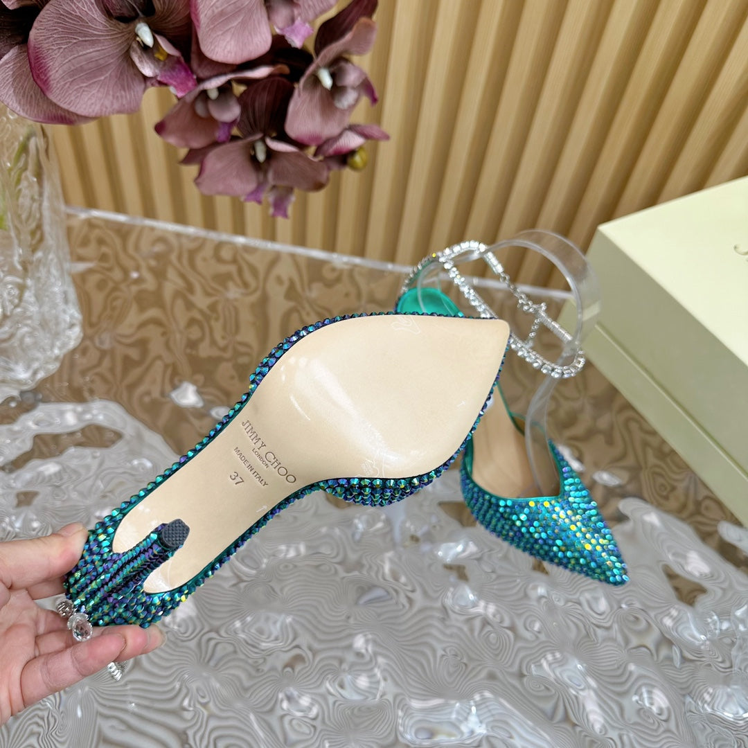Jimmy Saeda 105 In Duck Neck Green Pearl Studded Lambskin Pumps 581503