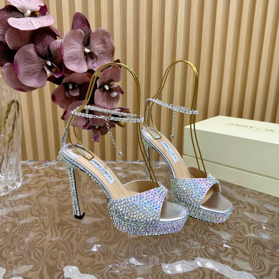 Jimmy Sandal 130mm In Multicolor Lambskin With Stone 581551