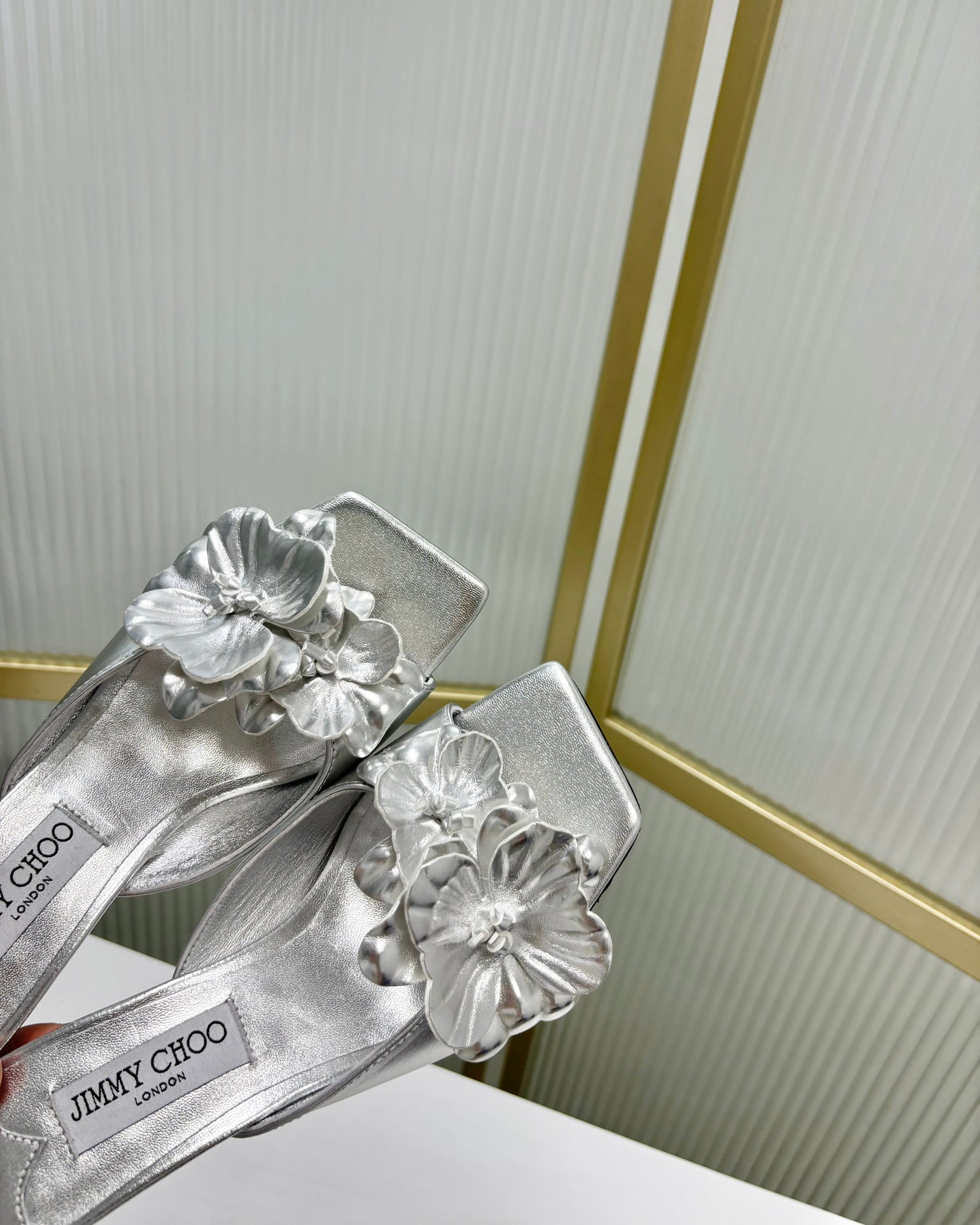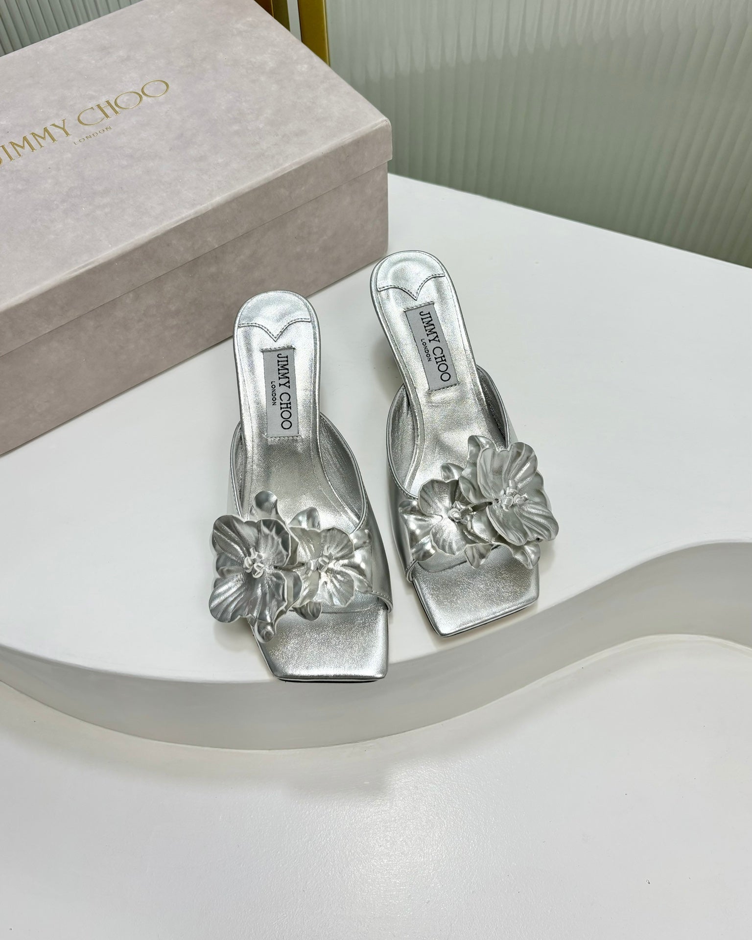 Jimmy Skye 65mm In Silver Cowhide Mules 597846