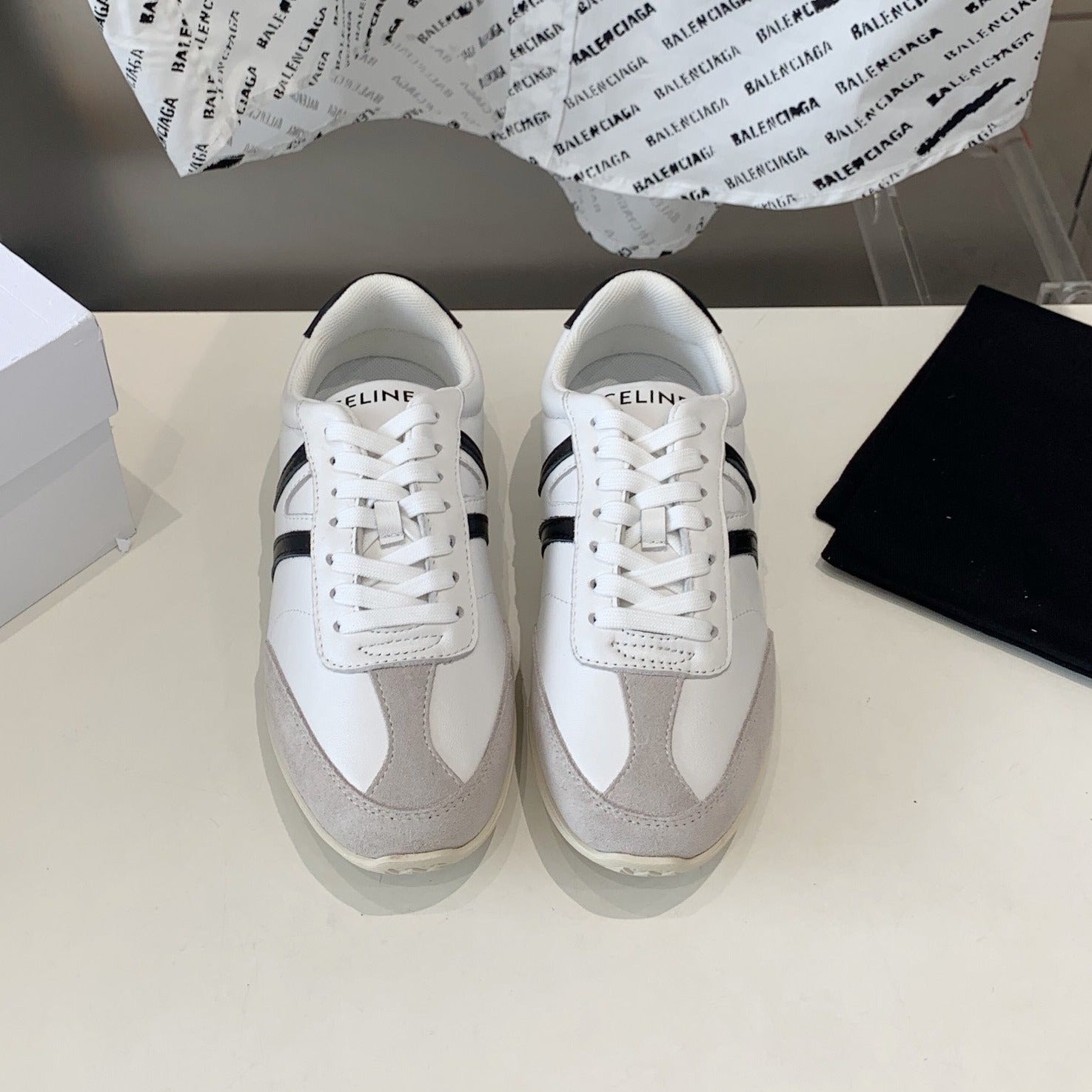 JOGGER LOW LACE-UP SNEAKER IN CALFSKIN & SUEDE CALFSKIN OPTIC WHITE/GREY/BLACK