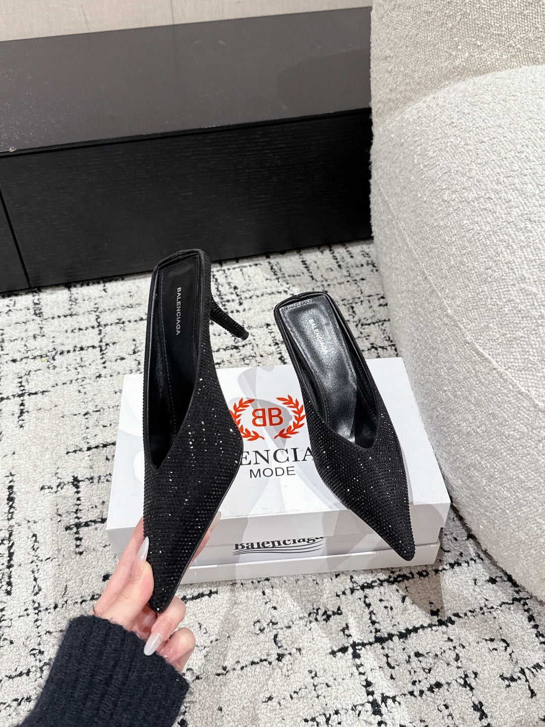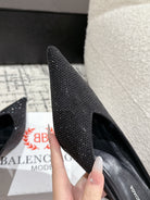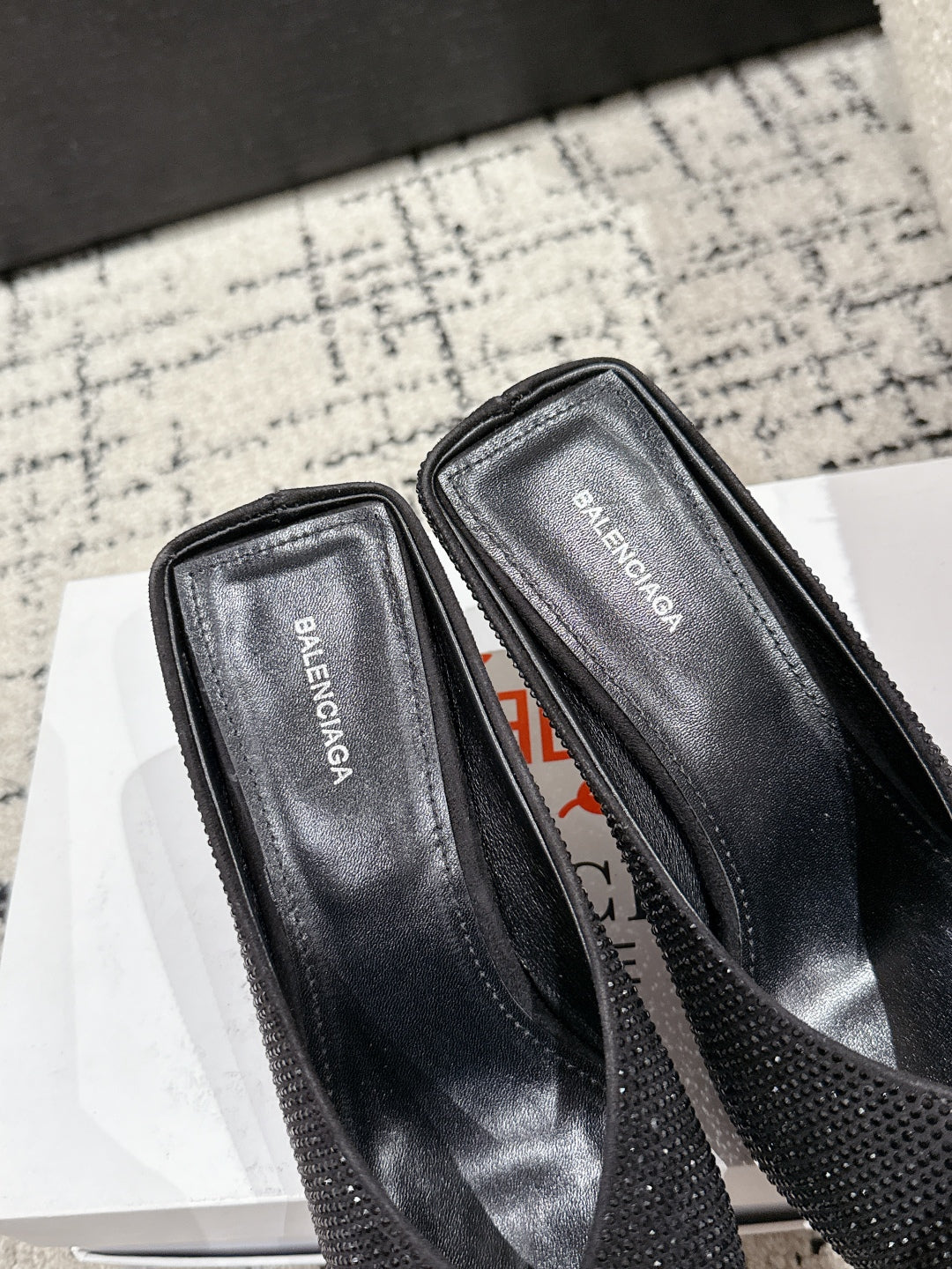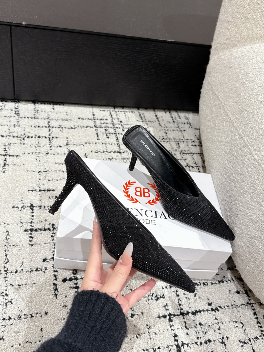 KNIFE 65MM HIGH MULE IN BLACK SUEDE ATTACHED FULL CRYSTALS